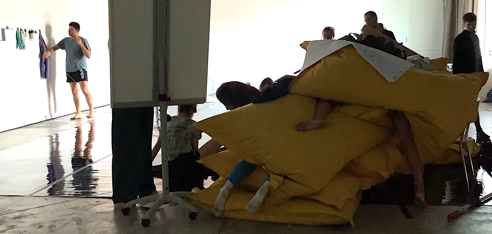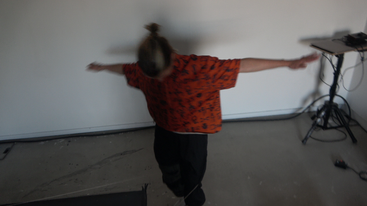 […] The third track of the research was physical thinking, so when Mia and I started this project we realized we were doing a lot of talking. We were doing interviews, going to the hospitals, meeting neuroscientists, speaking with people with Parkinson's, talking a lot – a bit like what we're doing here – but we missed our instruments, our bodies. That's how we research, we research through moving, so we decided to commit to a daily process of going into the studio every day and physically questioning what was happening […].