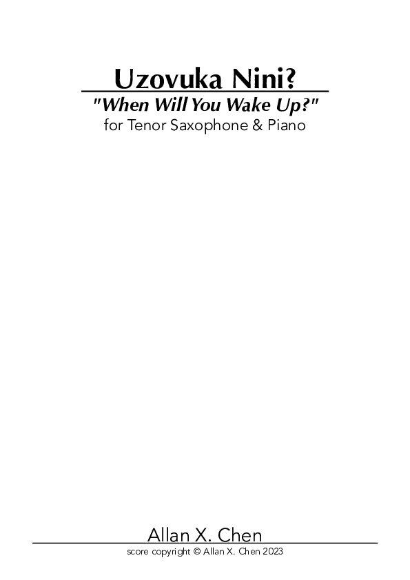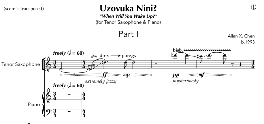 the state of saxophone music in South Africa. Saxophone music’s dominance in the jazz sphere in South Africa is one to be celebrated – it is a beautiful thing, especially considering its ties to political commentary and social movements in the arts during apartheid. However, it is also one that should also be critiqued. The dominance of the jazz scene for the saxophone has meant a stifling of its real origins – a classical instrument. Around the world at this very moment and over the past decade, incredible experimental and contemporary techniques are being applied to, and popularised in, the saxophone repertoire…we are seemingly behind here… “Uzovuka Nini” is both a critique of this current climate in SA saxophone music, while also hinting at a beautiful future for it. In this short part, we quote a popular SA jazz tune by Hugh Masekela – we twist it, squeeze it, disrupt it, so far that we present something suggestively “new”."