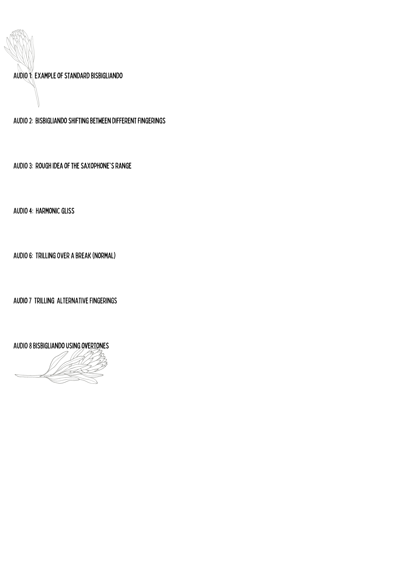 We discussed extended techniques and sound possibilities of the saxophone. Here is a list of techniques/audio Allan wanted to experiment with: