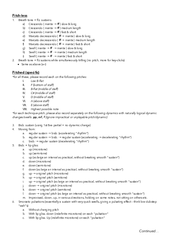 In this meeting Allan sent me this list of timbral effects he wanted me to record for him to hear what sounds these techniques would produce: