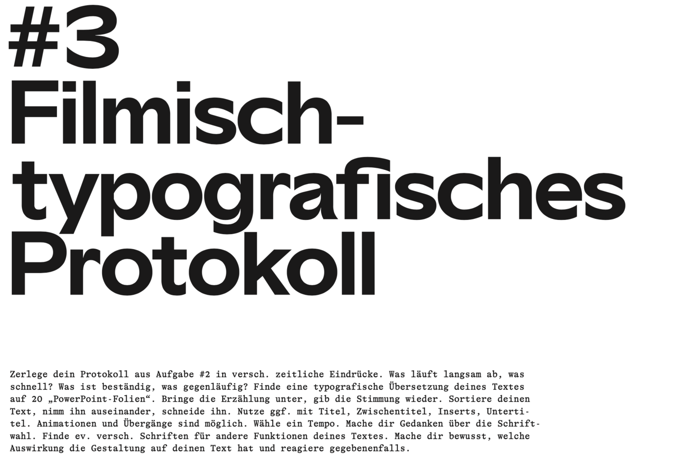 Schreiben und was das mit Film zu tun hat, und mit Typographie und vielem mehr. Experimente, Zusammenarbeit, Übungen, etc.