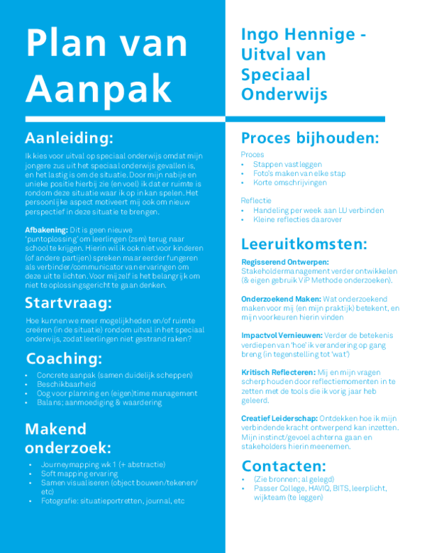 Hierboven mijn complete Plan van Aanpak (PvA). Dit was een basisdocument als uitgangspunt voor wat & hoe ik onderzoek uit ging voeren.