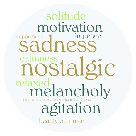 For the rest of the pieces, whose word clouds you can see below, both the perceptions and the reactions were quite standard, similar to the ones displayed in the non-musicians sessions. This could be indeed a noteworthy conclusion: the description of the emotional engagement does not change too much between the two groups. However, as I deduced at the beginning of the Musicians section, a non-expert but interested in music audience and another one of still young musicians could be close to each other, so I would prefer not to generalize these 'similarities' of emotional engagement.