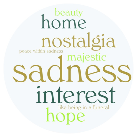 For the rest of the pieces, whose word clouds you can see below, both the perceptions and the reactions were quite standard, similar to the ones displayed in the non-musicians sessions. This could be indeed a noteworthy conclusion: the description of the emotional engagement does not change too much between the two groups. However, as I deduced at the beginning of the Musicians section, a non-expert but interested in music audience and another one of still young musicians could be close to each other, so I would prefer not to generalize these 'similarities' of emotional engagement.