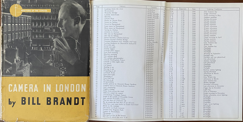 Brandt's second photobook, A Night in London, was published in London and Paris in 1938. It was based on Brassaï's Paris de Nuit (1936). The book tells the story of a London night, moving between different social classes and made use of Brandt's family and friends.