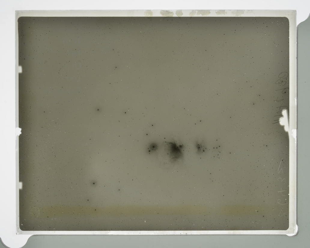 The ORION NEBULOSA from the ma telescope (12 inch metcalf doublet in Taunton MASSACHUSSETS), taken on 5 MARCH 1908 at 01:12 am (original GLASPLATE 00496)