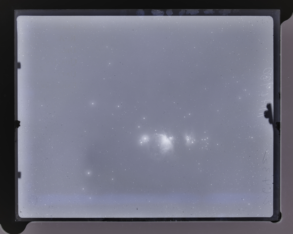 The ORION NEBULOSA from ma telescope (12 inch metcalf doublet in Cambridge, MASSACHUSSETS), taken on 27 JAN 1936 at 03:28 am (original GLASPLATE 05118)