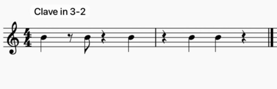 One of the most characteristic things of Afro-Cuban music is a five note rhythmic pattern called clave. “The word clave literally means "key" in Spanish and this is precisely what the clave rhythm is—the rhythmic key and fundamental building block of all of the Afro-Cuban songstyles” (Uribe 1996, 34). It consists of a measure of two notes combined with another measure of three notes which can be played in two ways: 2-3 or 3-2. The variation of this order depends on the intention of tension and relaxation of the style. This pattern is the anchor of all polyrhythms, improvisations and melodic lines that move around it.