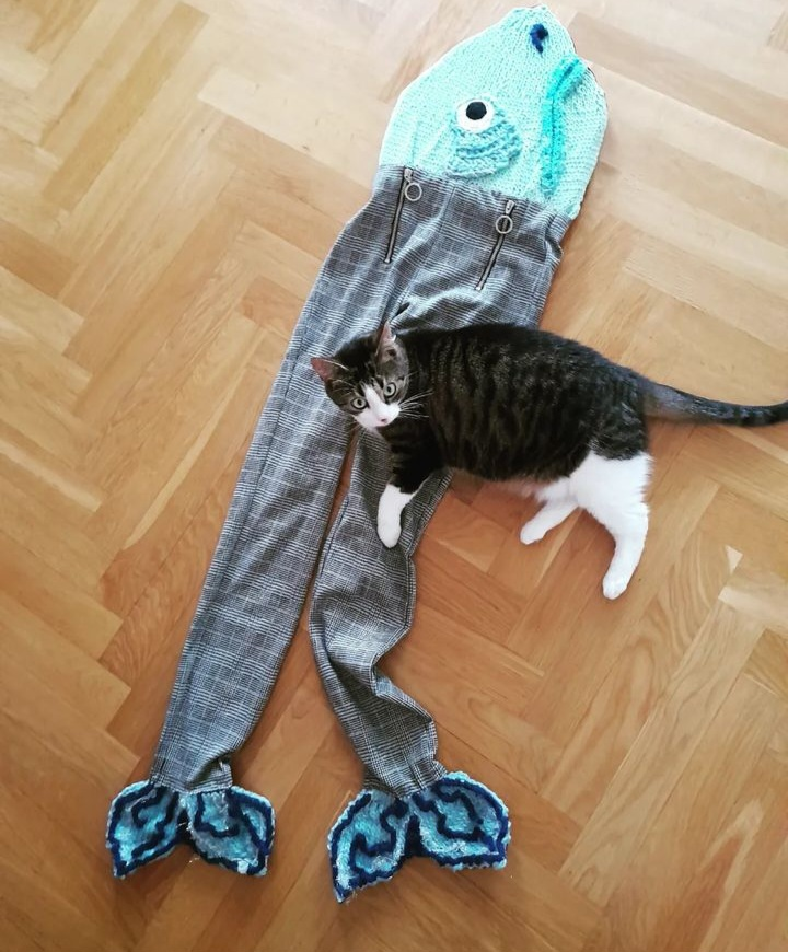 I started to fill the old clothes with soft fish.