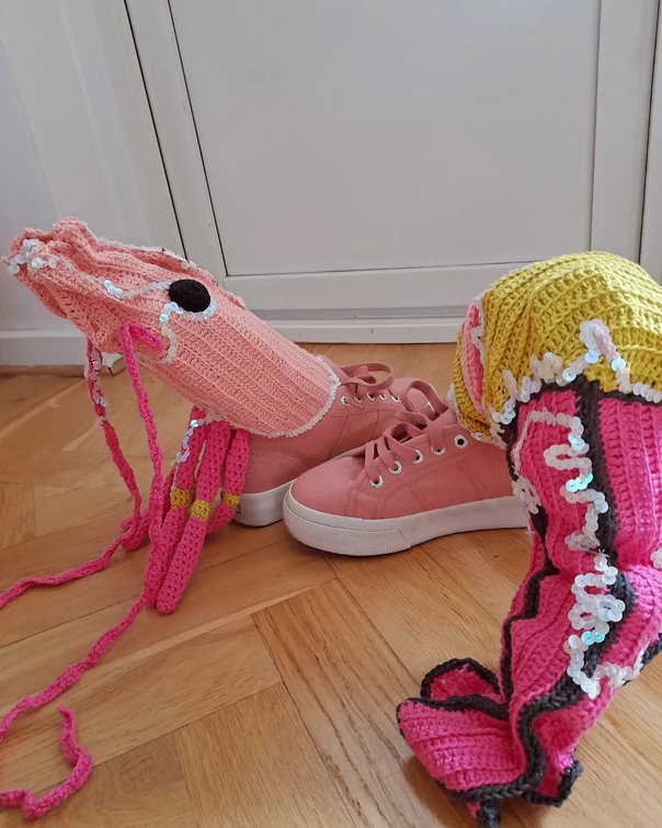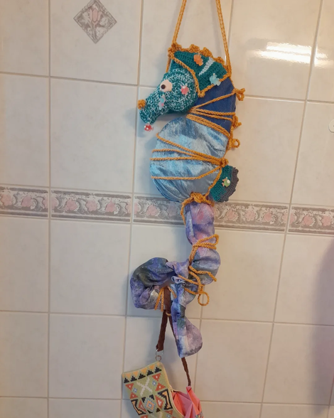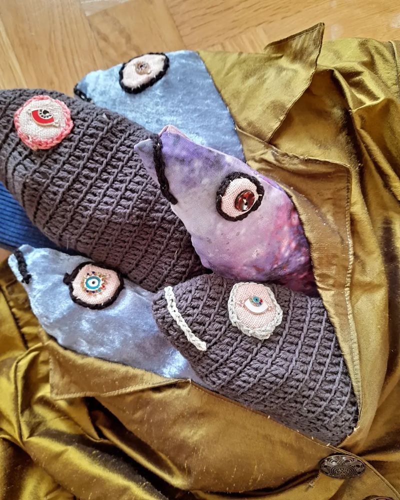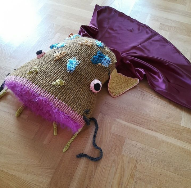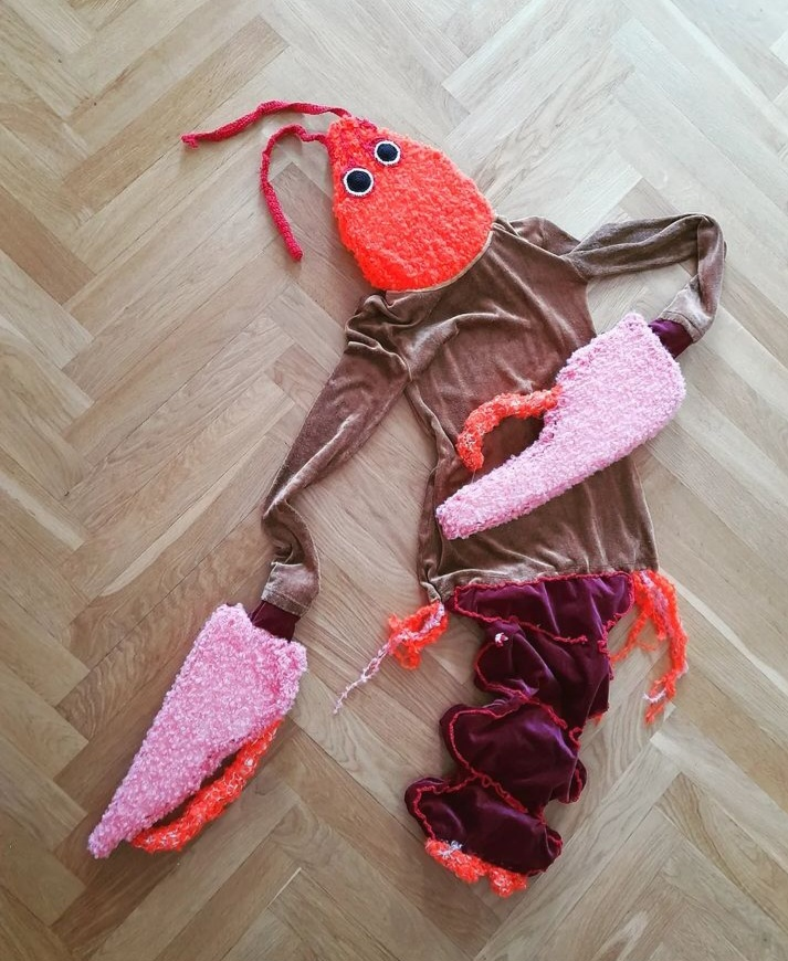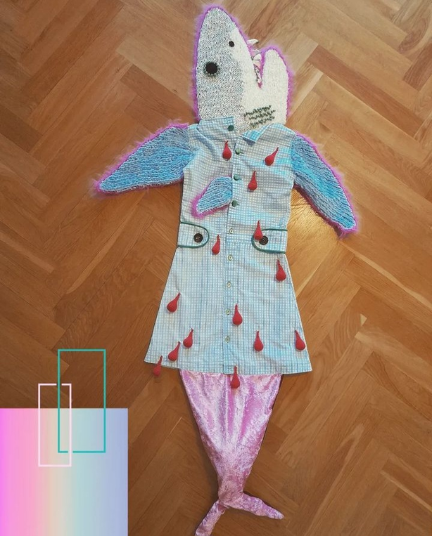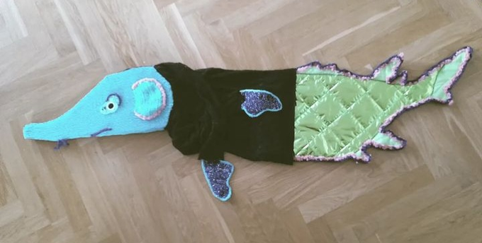 My text world is a text-ile wor(l)d and I started crafting all the fish. My parents came with a big box filled with clothes I made as a teenager, a short time after receiving the HOPPAS DU BLIR FISK letter. Yes. Forgot to say: the context: I was hospitalized, when I was thirteen, with eating disorders, and my brother wrote a letter to me, it said: JAG HOPPAS DU BLIR FISK.