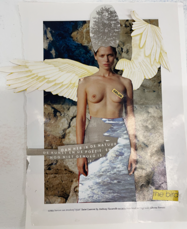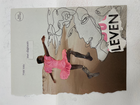 Met blote voeten op de gras - loper/entree die ik maakte, kijk ik naar mijn werk en besef: het begint met voelen. Mijn creatie is ontstaan uit een interpretivistisch paradigma, waar voelen en creëren centraal staan. Met mijn handen doorbladerde ik tijdschriften, knipte beelden en woorden uit, en transformeerde de collage naar een digitale variant met beweging. Alles op intuïtie en creatiekracht.