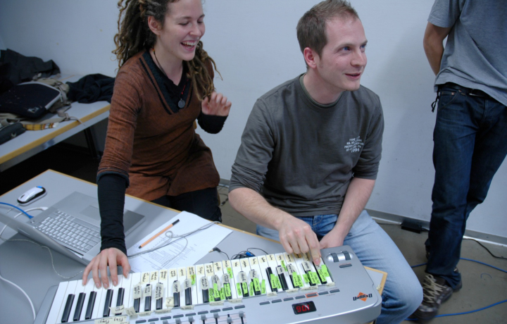 Another point observed was that as soon as sensor technology is considered, be it conceptually or in actual implementation, it will take time and energy away from a sound-driven exploration. We strongly recommend starting with open methods for both sound generation and sensor technology and to maintain this openness as long as possible. This makes the process more undefined but leads to an extensive engagement until the end.