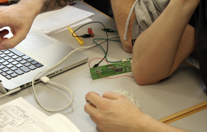 The key challenge in this stage is to be able to abstract from real world situations to single parameters and eventually come to simple yet effective solutions that also take into account the chosen context. In our case of interactive sound design, this means using appropriate interfaces between input data and the sound production environment. Therefore, students are using established prototyping tools (e.g. Processing, Arduino) together with improvised combinations of different sensor platforms (Microsoft Kinect, distance sensors, microphones).