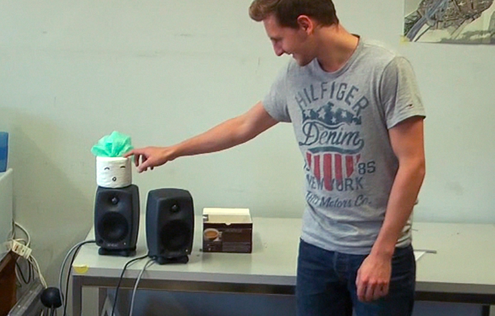 On the other hand, in response to the related pedagogical issue mentioned earlier, there is the need to demystify sound design, as a prerequisite for reducing the inhibitions and increasing self-confidence in students, independent from their background and experience with sound. This is partially achieved by using “quick’n’dirty”(3) low-tech methods that are readily available and do not require extensive practice or experience with technical tools, but offer an access to the richness of a vast, nearly unlimited, range of sonic possibilities as well as the possibility to increase the impact of the design demonstration by practice and experience. Such methods allow for a process that begins with drafting interactive sound experience and gradually works towards a final, technically elaborate, implementation. In so doing, we try to make sure that no compromises on sound design are made.