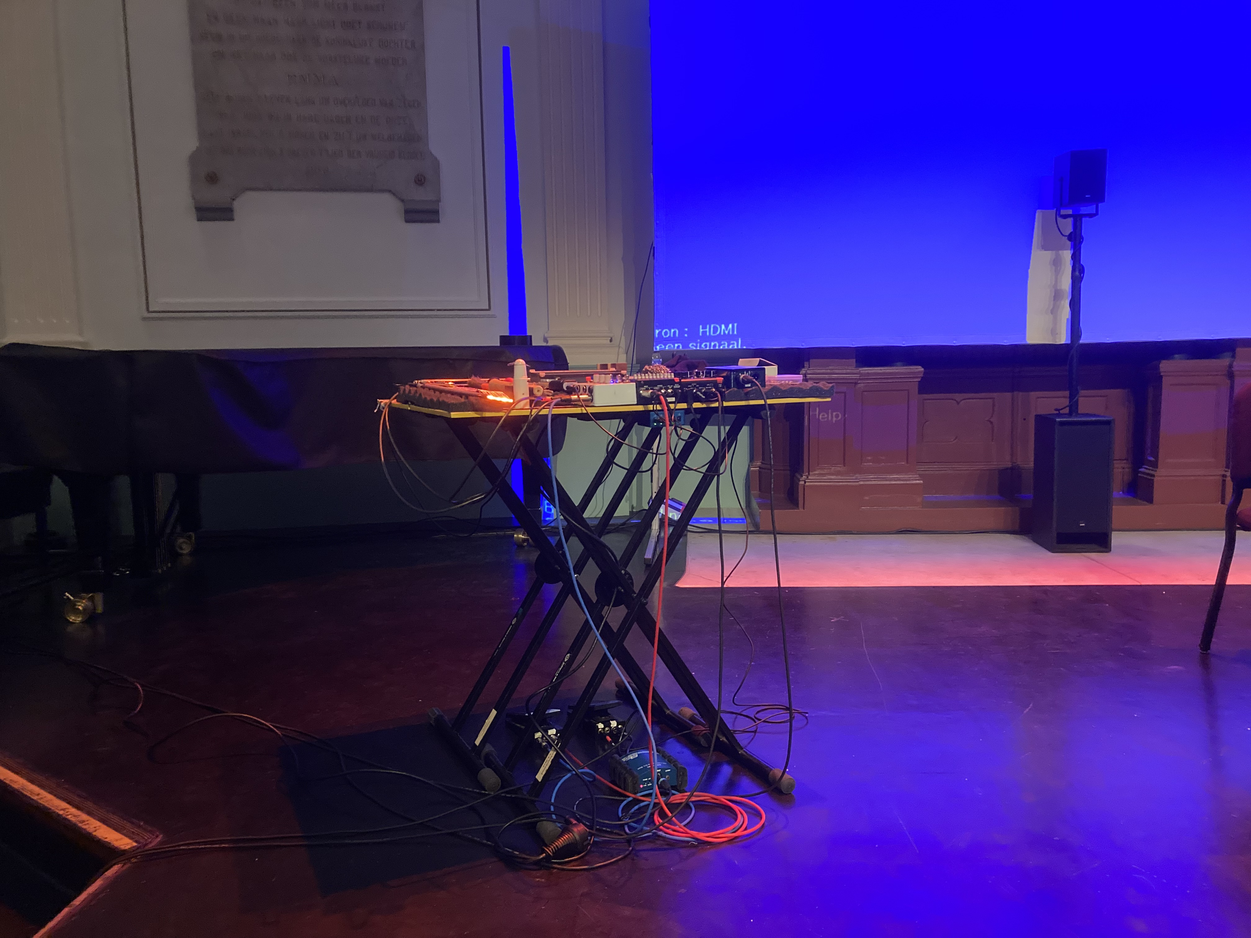 I would also like to focus on the further deconstruction and reconstruction of the electric guitar amplifier to explore how I can repurpose the peculiarities of the amplifier to fit the object guitar environment better. There is latent potential in using objects with guitar speakers that I have not yet had the opportunity to explore. Preparing the speakers could greatly extend the sonic possibilities of the guitar amplifier. I would also like to examine the potential for multi-channel speaker systems. Here, I am interested in creating a configuration of multiple guitar amplifiers with a distinct character, such as bass guitar amplifiers, cheap practice amplifiers, and broken tube amplifiers.