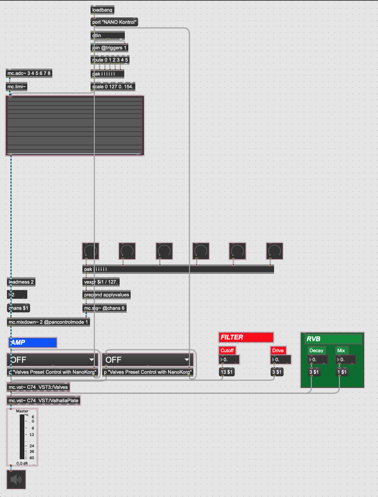 As discussed in I still intend to build a custom control panel for the 18-string Object Guitar that can function as an analog mixer, panning each output signal across the stereo field.