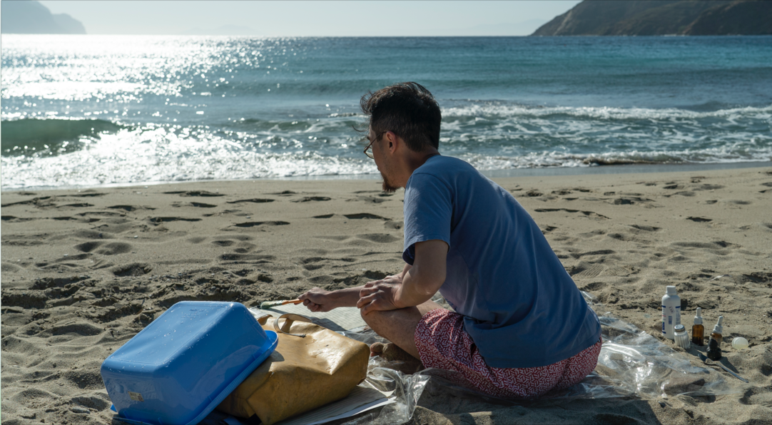 A 2-part module by the MA Transdisciplinary Studies of ZHdK, Department Kulturanalysen und Vermittlung. Held by Anna Rubi & Eirini Sourgiadaki. Autumn 2023-Spring 2024 Colour perception varies, so do the semantics of colour terminology, for both sighted and blind individuals. The questions around colour perception from ophthalmology or neurobiology perspectives to cognitive and artistic ones, are infinite: Is there a universal human experience of the blue sky, the green grass and the brown soil? How is colour perceived in the brain, how is it translated into a communicable concept and how does it affect our perceived world, our mental and physical state? What is the role of colour in synesthesia? And most importantly, does colour have to do just with vision? In this module we work with the generation of blue colour on print, using the major light source available, the Sun. The Island of Amorgos is often referred to as “Le grand bleu” after the famous french film was shot at location. Its ancient name is “Melania”. “Melani”, the Greek word for ink, (“Melano” for dark blue, cyan) as it is said that in ancient times the place was covered with dark green flora. Our investigation begins exactly with this deep tint. We pay a visit to the famous monastery and the water oracle, walk the trails to observe the sensual -not only vision-based- shades of blue. In the spring term, we participate in local activities such as beach clean-up initiatives of the remote bays by local fishermen and their boats. We visit bee-hives and herb-distilleries, we work with the most basic bits and pieces of the island to capture its essence.