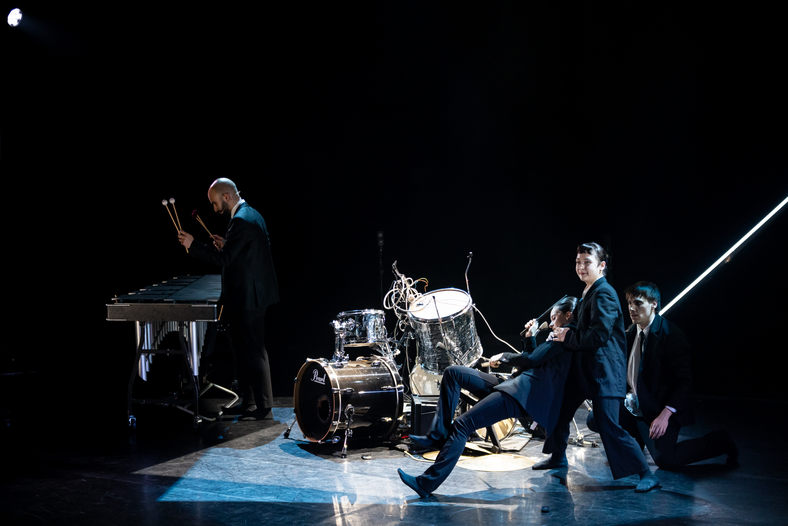 The cast includes Zaneta Kesik and Matija Franjes - two dancers (doubling as choreographers), and Joao Brito and Kalina Vladovska - two percussionists (doubling as composers), creating the narrative, dramaturgy, choreography and (some of the) music on their own. The director, Renee Spierings, was invited to be an external coach. Teus van der Stelt and Maurits Thiel - light and sound artists - took care of the final presentation. The four performances took place during and thanks to Muziekzomer Gelderland 2023 and were produced by Jarick Bruinsma.
