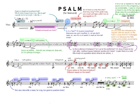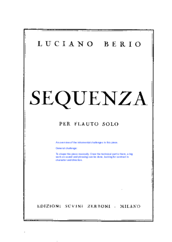 Specifically, I show him the difficulties of Luciano Berio's Sequenza I for Solo Flute. This annotated score is the result: