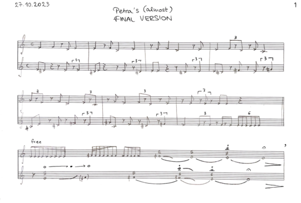 Before the summer break, we discuss some possibilities and agree on a plan to compose the final outcome of our collaboration. It will be a duet for two flutes, since we are both flutists.