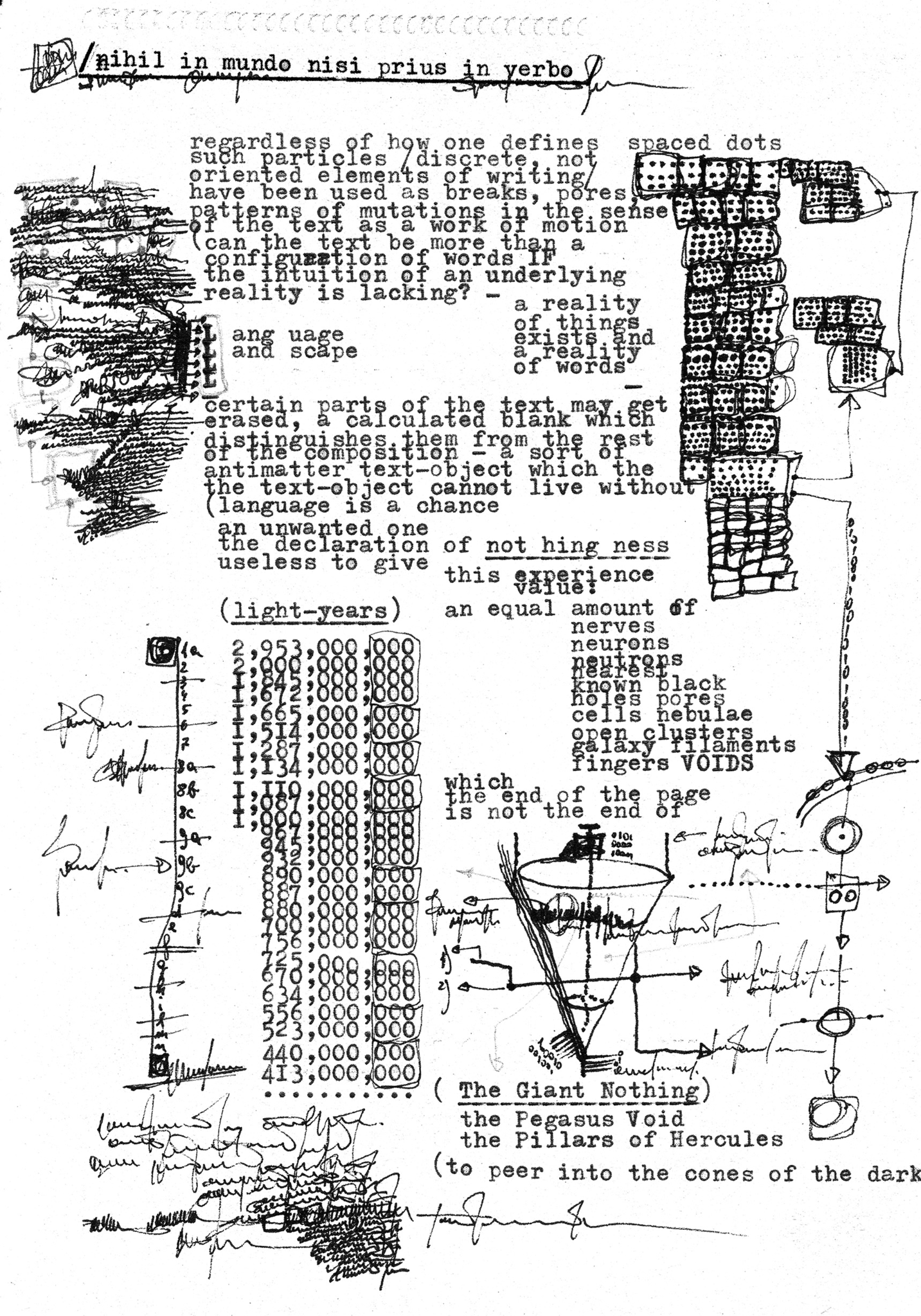 Objects under investigation is a collection of separately conceived works that address the problem of textually-related media and, in a sense, mediality in art from an experimental perspective. The word “object” is meant as a neuter reference to both text as a phenomenon and text as a product in itself. It evokes the idea of something to be physically handled, while not necessarily being a physical object. As stated by Rosalind Krauss, any medium may bring about art, and the special condition conventionally called post-mediality involves using media traditionally not intended to make art. Considering the medium in relation to broadly conceived textual objects is particularly challenging. The issue cannot, in fact, be limited to the invention of a set of unreadable signs apparently disjointed from reality, as in the case of asemic writing, nor to the combination of such signs with alphabets or languages drawn from widely disparate fields, as occurs in other hybrid forms. The process of writing becomes open, yet more inherent, and the concept of medium is reframed. Moreover, since writing is hardly separable from reading, a further—and possibly even more complex—field of investigation arises: what does it mean to “read” something asemic; does it make sense to attempt to sequence an asemic pattern?
