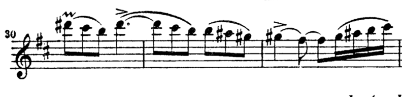 In this excerpt for me it was difficult to play large intervals (not breaking, having great flexibility and good tuning), maintaining a good tempo, the tuning at the end of phrases and general phrasing.