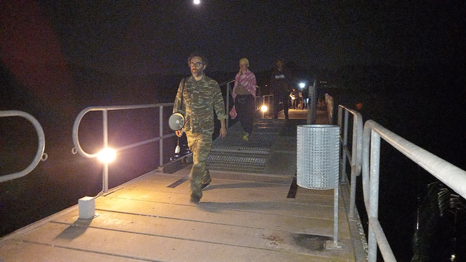 Several different individual tactics aid the staging of the above. The sheer phenomenology of actually being in this particular place at that particular time is one of the most important compositional aspects. The audience has an immediate experience of the scents of the lake, the bush, the reeds; they listen to the vocalizations of frogs and toads, various insects, and birds as well as to the creaking sounds of the bridge and the subtle waves of the lake; they feel the night breeze caress their skin and are gently (or more forcefully) pierced by the fauna and branches of trees; and they are bitten by mosquitoes. Then, there is the author’s outfit. It should be noted that the military uniform worn by the author is his own from when he did his military service (see Personal Recollections). It then affords two roles. First, it has a somewhat ‘sculptural’ or scenographic quality, as it is a material imbued with the memory of its past use. Secondly, and from the author’s point of view, it becomes a tool aiding him in personally connecting with the place and the difficult history it entails.