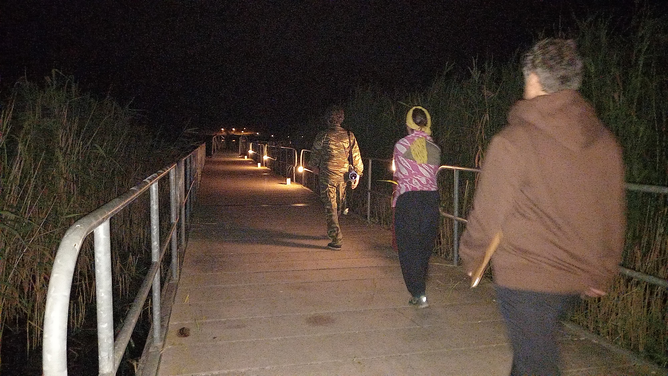 Part soundwalk, part performance art, part punk archaeology, part getting lost in the dark: ‘Άφρικα: A Certain Kind of Freedom’ is a nocturnal rumination that brings together historical bewilderedness with first-person embodied experience of a place. The artist leads a night walk to, within and back from Agios Achillios island in Small Prespa Lake – near the borders of Greece, Albania, and North Macedonia. En route, the walking audience is exposed to wildlife sounds and animal vocalisations, to orchestrated drama, and to historical records directly or indirectly concerning the broader area and its significance for the Greek Civil War, which is largely a taboo subject in Greece. In doing this, the author attempts to (re)situate history, the contemporary ramifications thereof, and his subjective sense-making within a unique wildlife habitat. In this way, he calls for contemplation on ‘freedom’ – conceptual, imaginary, and actual freedom.