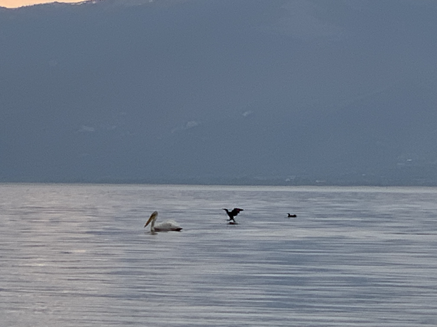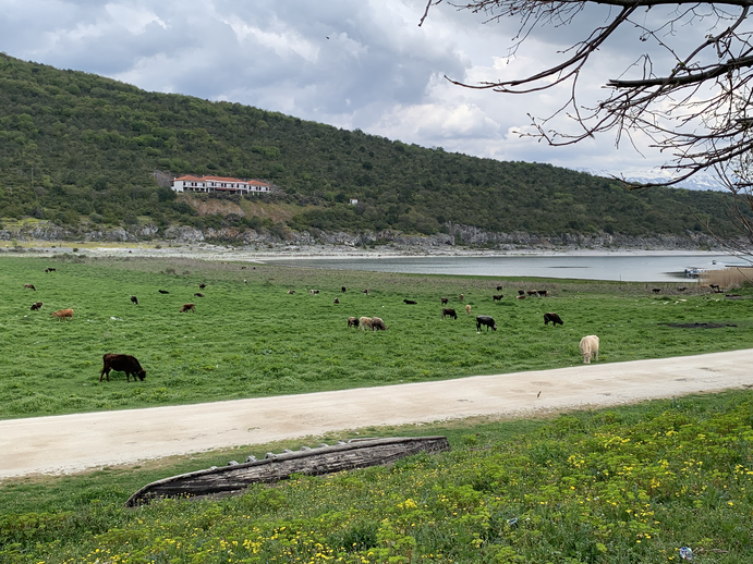 The Prespa Lake area did not really survive the Civil War trauma (see Historical Background), and it has scarcely been inhabited since. The area is a system of two lakes separated by an isthmus. The Great Prespa Lake is divided between Albania, Greece and North Macedonia, while the Lesser Prespa Lake is mostly within Greece and features the Ag. Achillios island. These two lakes are the highest tectonic lakes in the Balkan region. For many years, the Greek part was an underpopulated, militarily sensitive area that no outsider could visit without special permission. An informal ‘war of symbols’ still takes place in the region between the Greek Communist Party, local/national authorities, and right-wing organizations installing monuments to commemorate different aspects of the history of the place. It nevertheless remains a vibrant wildlife habitat rich in vegetation, forests, and wild mammals, and it has been officially declared a transnational reserve. The Lesser Prespa Lake in particular is home to a variety of species of birds, frogs, toads, reptiles, and fish.