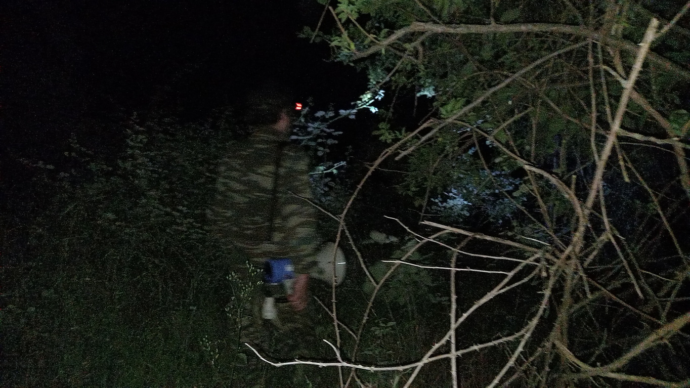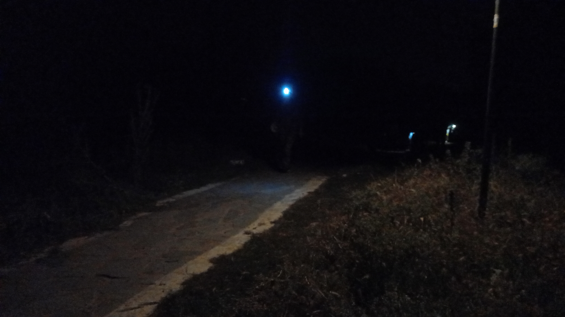 Lost in the dark [5']: The author keeps moving around haphazardly, but this time in silence and quite often in darkness. He tends to favour difficult-to-reach spots and to hide himself in between the trees and in ditches; the audience is, accordingly, left rather disoriented and ‘lost’ in the darkness. This and the previous phase take place in the area within the yellow circle in the map above.