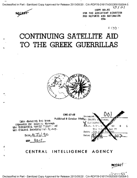 The decision to share the CIA documents was a difficult one. In reality, there can be no objective – not even pretentiously – history of the Greek Civil War. On one hand there is a plethora of written sources, including the official archives of the Greek National Army, the KKE’s (Greek Communist Party – see also Historical Background) historical records, numerous biographical and autobiographical accounts, works by Greek as well as foreign scholars, and more. Naturally, narration comes more often than not through ideological lenses and in ways that extend well beyond a simplistic left-wing/right-wing opposition; it also concerns leftist criticism of the KKE, KKE self-criticism (this actually led to the rupture of the Bucharest-based KKE leaders with the leaders of the illegal Greek fraction in the 1960s, so that for several of the following decades there were two KKEs: the ‘domestic’ and the ‘foreign’ one), (non-)royalist right-wing lenses, pro/anti-American lenses, foreign colonial and post-colonial readings, and more. It should be noted that several records about the Greek Civil War (in the UK, the US, Greece, and Russia) are still classified and will not be disclosed any time soon.