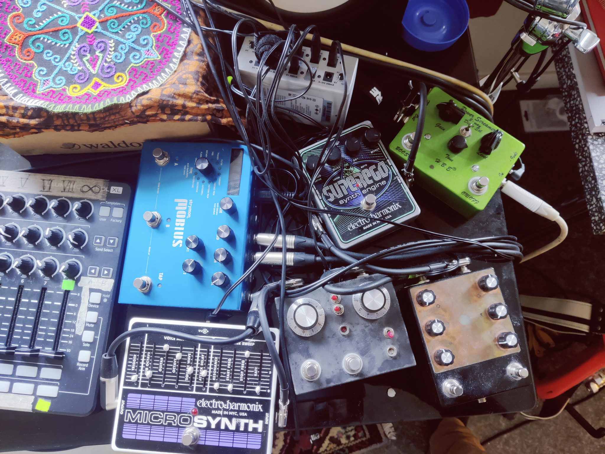 Facilitating for a full spectrum live musical experience in an improv duo format requires flexible, multidirectional design of signal paths, clever mapping of controllers, the ability to dynamically change tempo, tonal centers and timbres, tame or boost frequencies, daring to seek dangerously close to peak volumes and chaotic feedback, yet retaining headroom for nuances. The availability of swapping instruments at hand quickly or controlling several parameters at once demands transductive efficiency, a term I use to describe how much effort it takes to transduce a gesture, intentional movement or sensory signal to its new medium. All of these aspects, regardless of how the music ends up sounding, decide whether the feeling of operating such a system feels chaotic or organized.