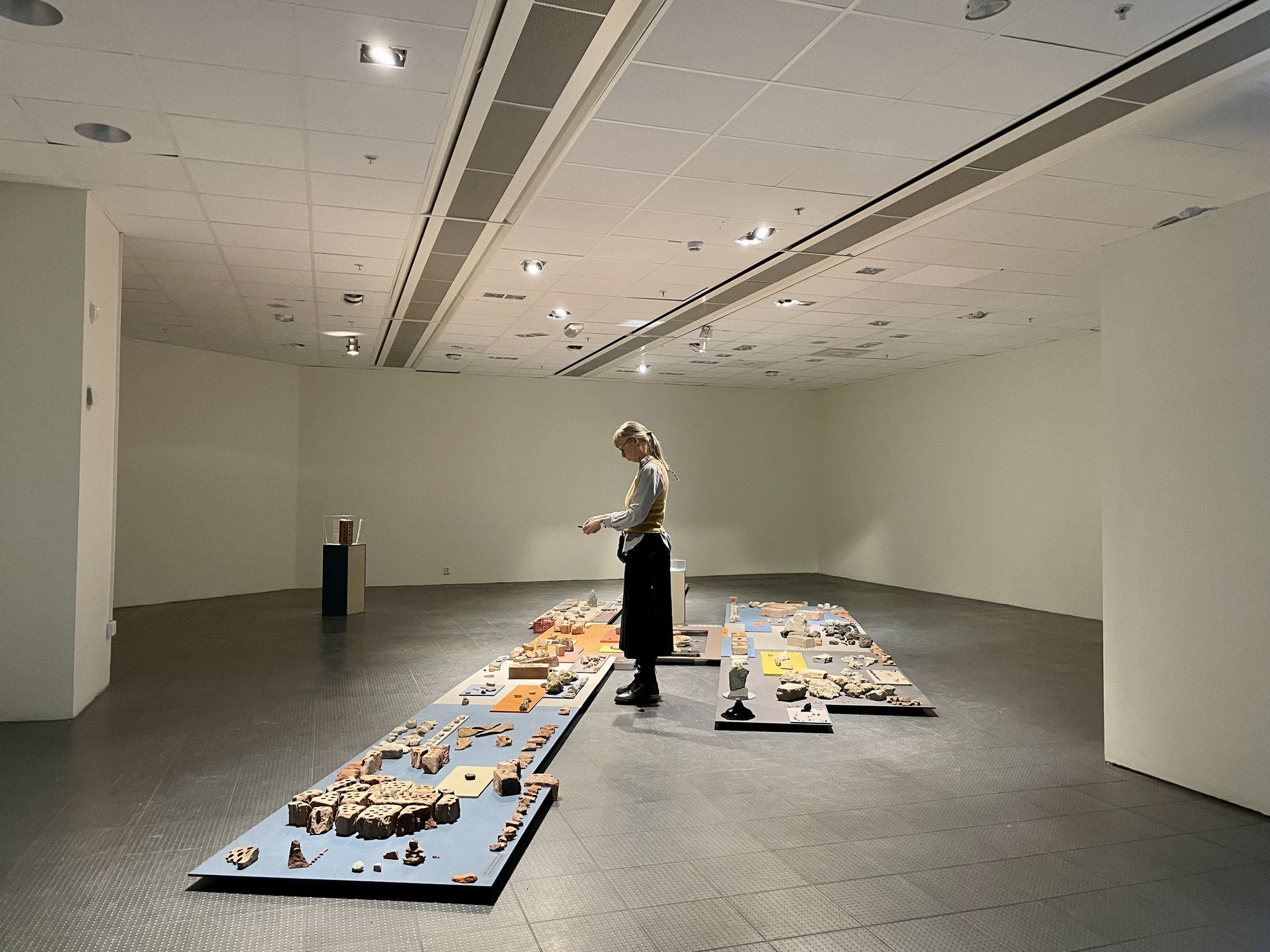 Fynden som gjorts under utgrävningen utgör grundelementen i gestaltningen. Likt böckerna i ett bibliotek eller arkivlådorna i ett arkiv ges innehållet en ram. Den slutliga presentationen är ett periodiskt system men också en framställning i en mix av en skulptur, en hylla, en modell, en film, en stämning, en text, en teckning, en dans, en sten, en doft, en berättelse, en maträtt, ett ljud, en sång, ett smycke eller annat som har hittats under utgrävningen. Allt samlas i en utställning som utöver fynden även rymmer nya samtal, workshops och möten. Projektet ställdes ut lokalt i stadsdelen där branden skedde, där det föreningsdrivna kulturhuset FOLK i Skärholmen genom sitt delande av sina lokaler möjliggjorde de rum som projektet behövde för att få de många trasiga fragmenten att under en begränsad tid sättas samman till en sammanhållen enhet.