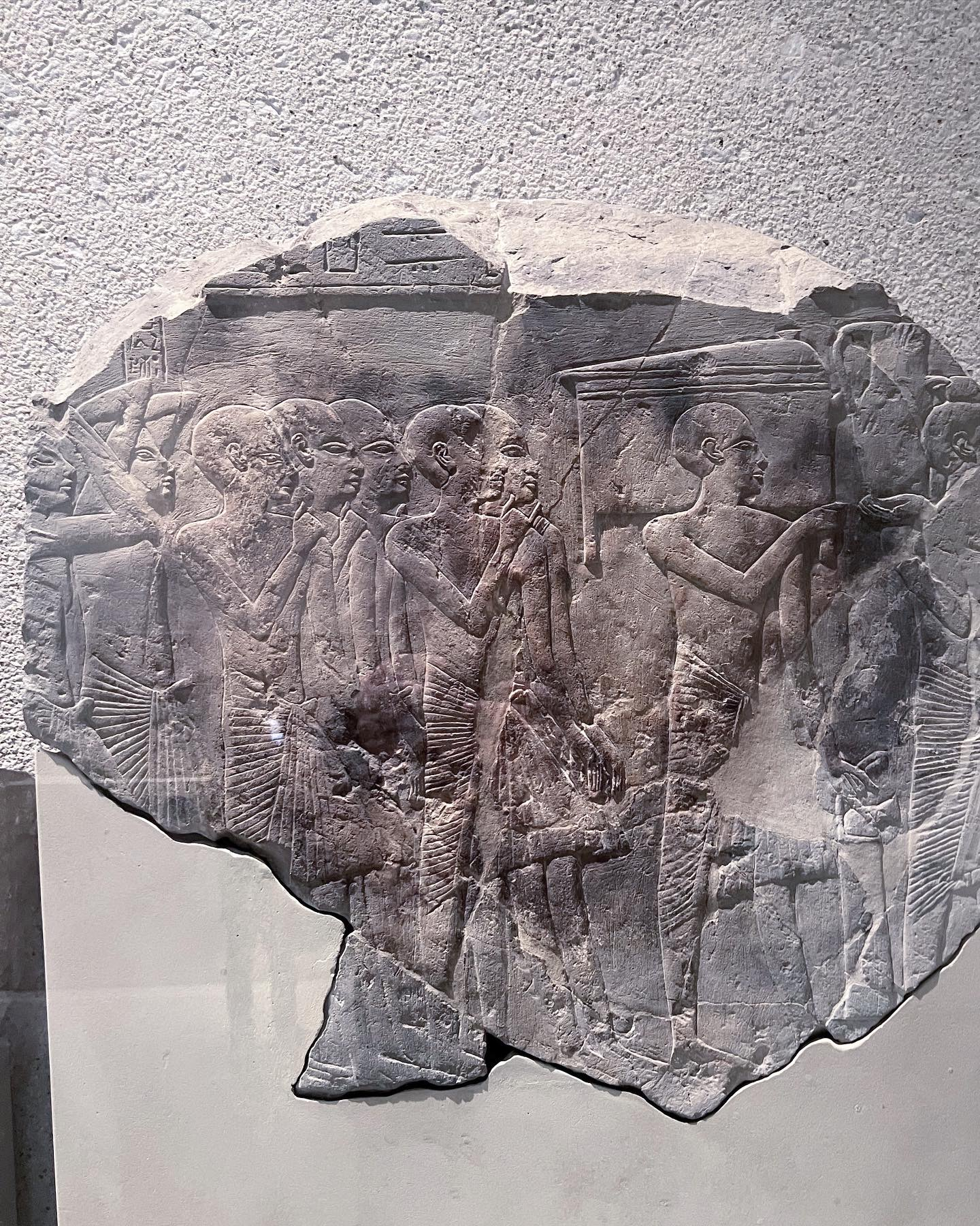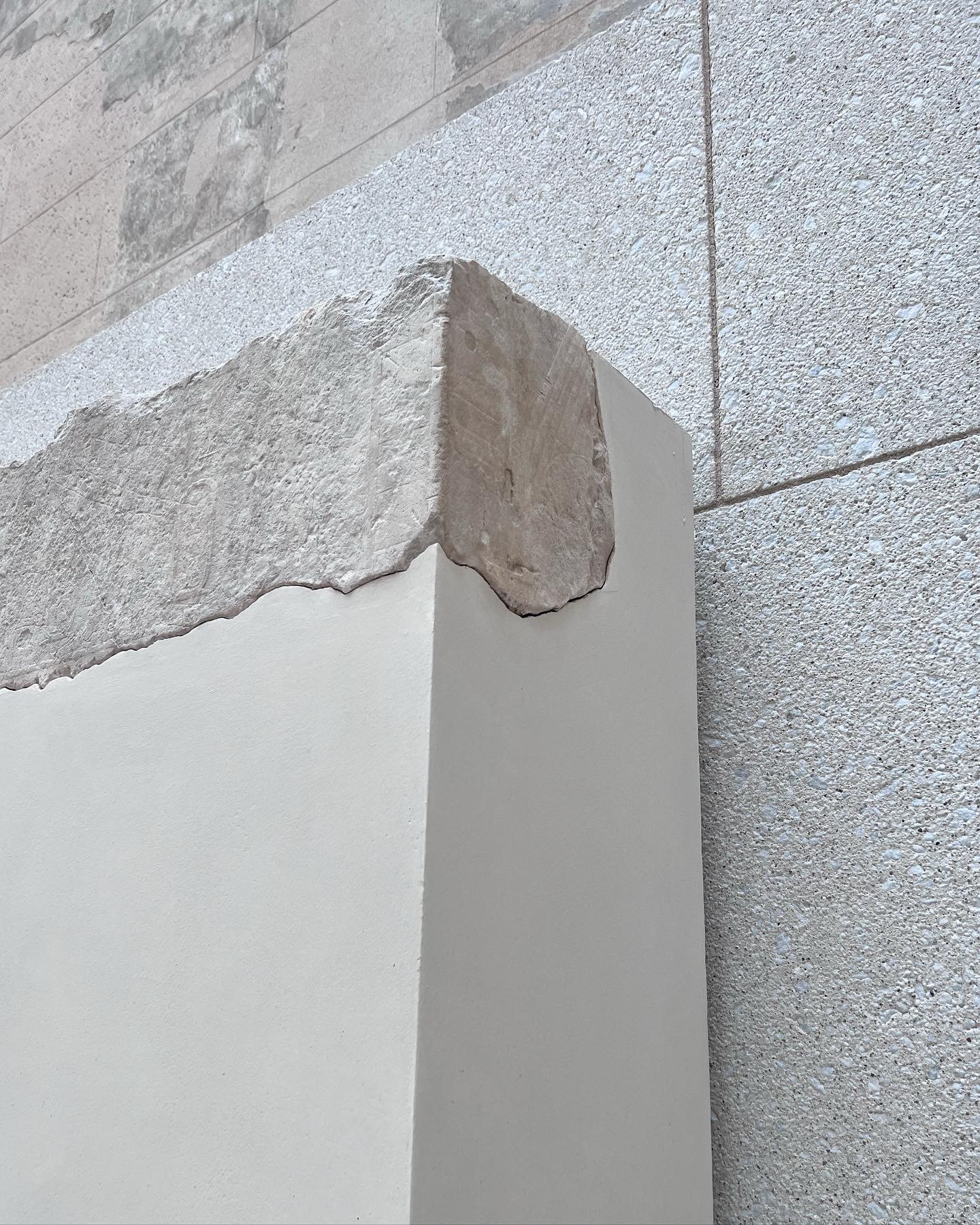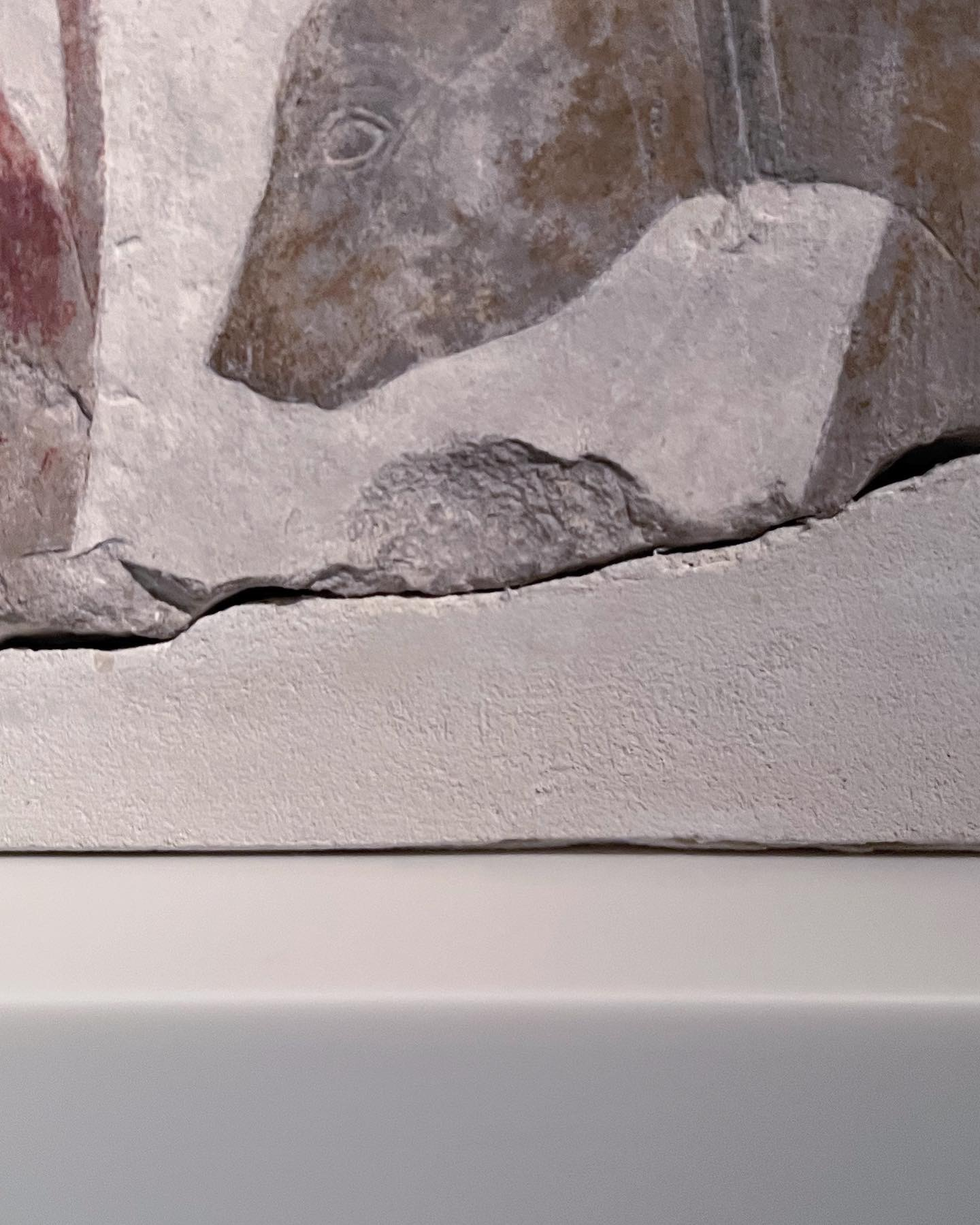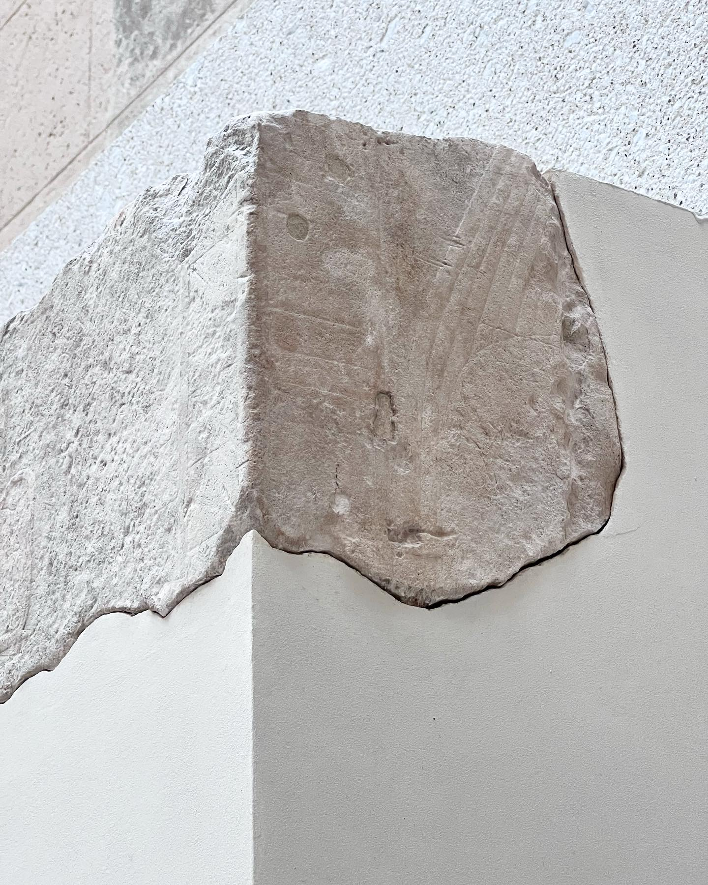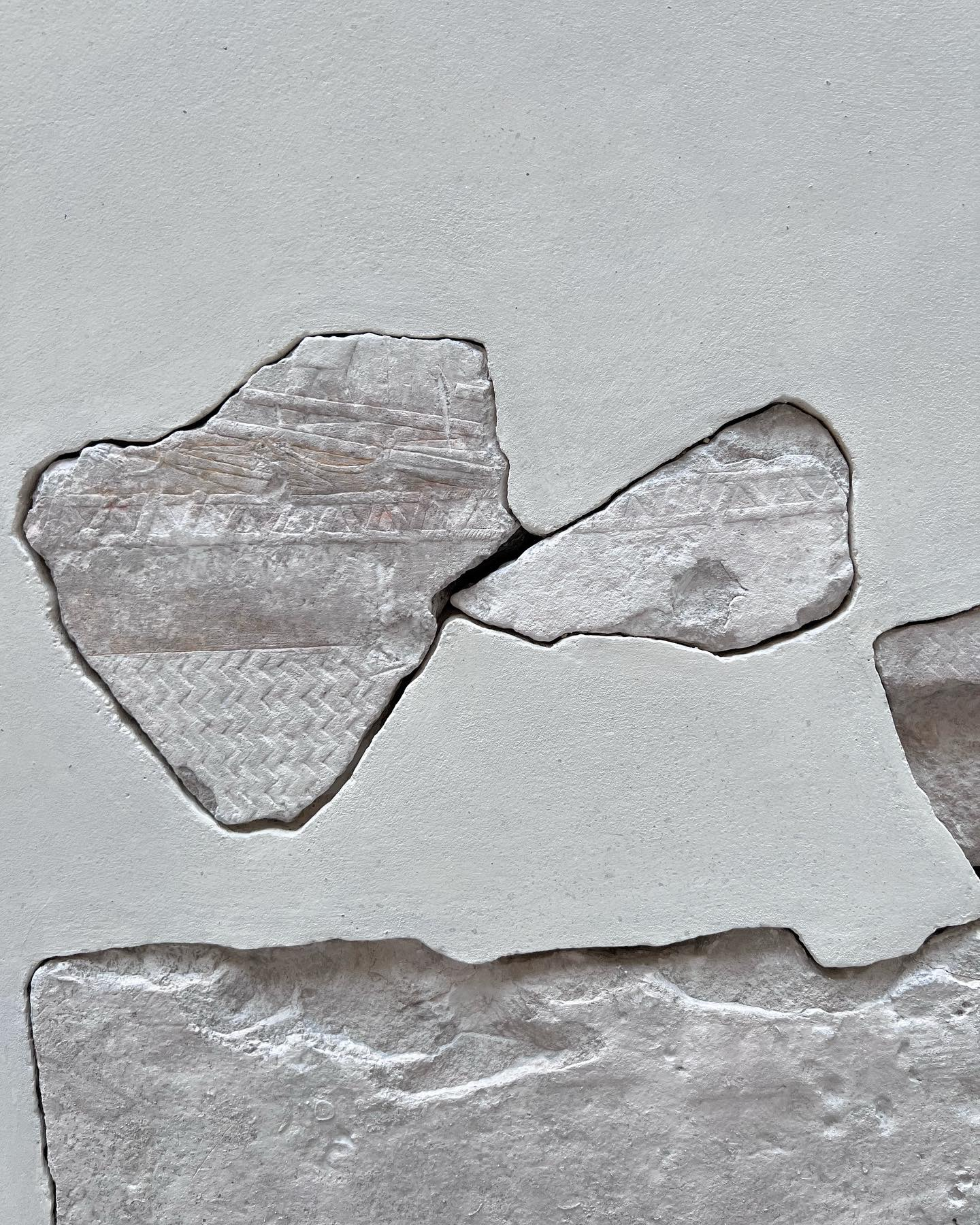 Inför utställningen Skolbrandsarkeologi på FOLK i Skärholmen / Ateljé SKHLM gjordes ett studiebesök på Pergamonmuseet i Berlin, som är ett av världens största arkeologiska museer, känt för Ishtarporten och Pergamonaltaret. Vid besöket studerades hur museet arbetat med utställningspresentation i relation till ljussättning, montrar och andra liknande presentationsformer. Dokumentation gjordes av hur bland annat bitar av byggnader getts skulpturala socklar som placerar dem på en plats i rummet i en position som de en gång suttit i, exempelvis en bit av ett hörn på en byggnad (se dokumentation). Detta var en presentationens estetik som sedan implementerades på utställningen som en strategi att lyfta fram skolans insamlade stenar som om de bar samma värde som tusen år gamla arkeologiska fynd.
