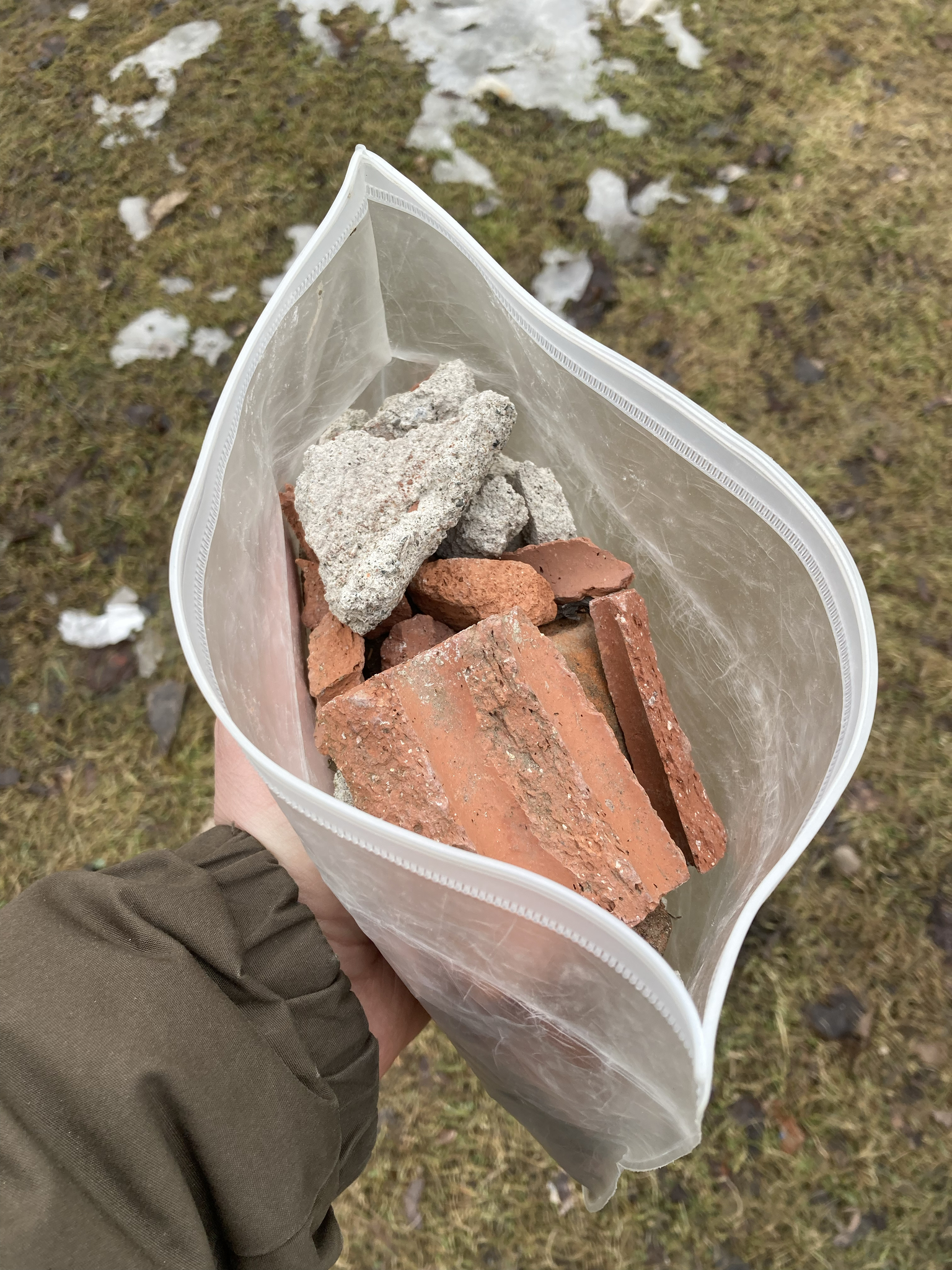 Metod: Fysisk insamling av rester från rivet skolhus.
