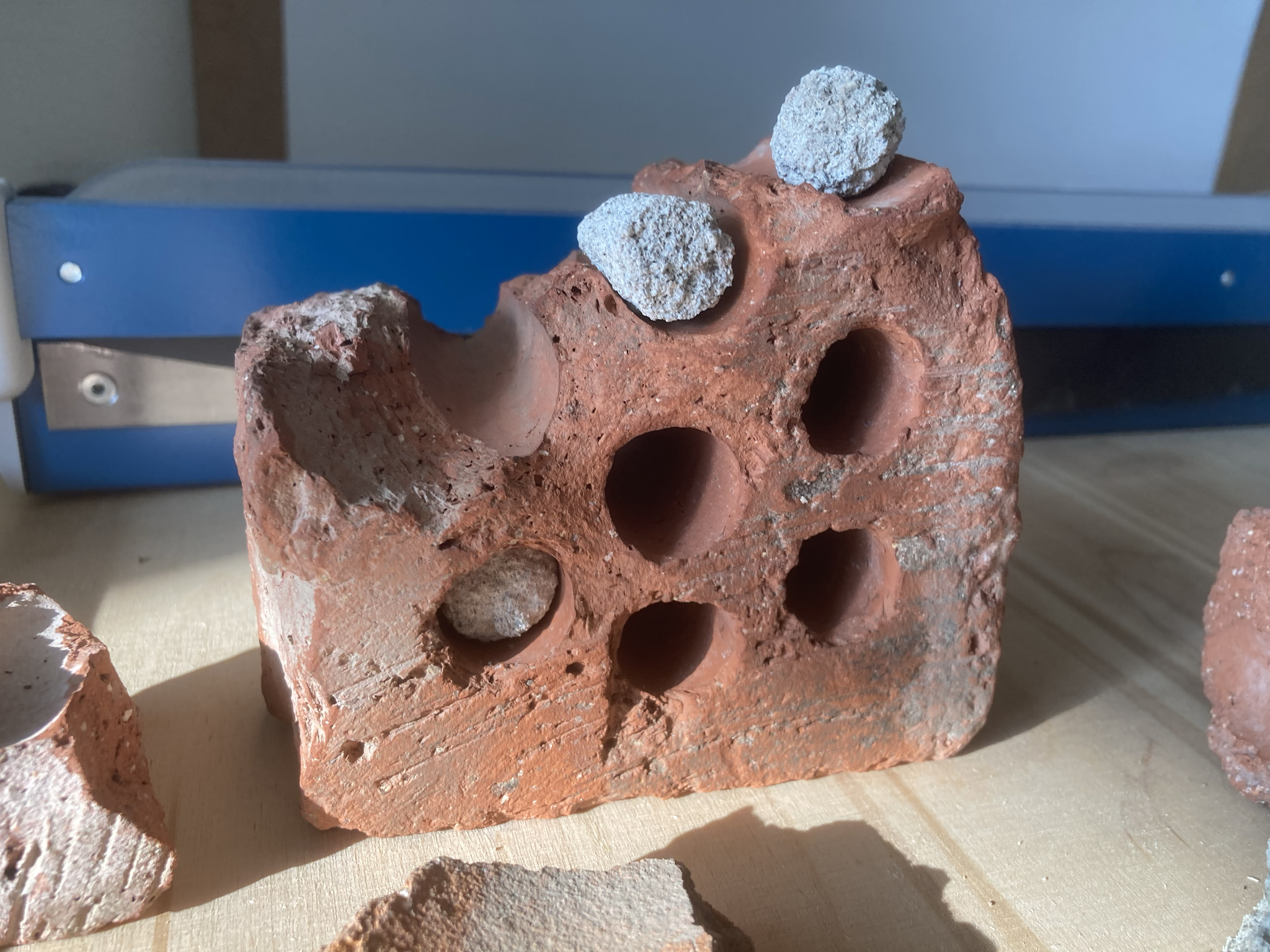 Materialtyp: Mindre bitar av tegelsten, betong, cement