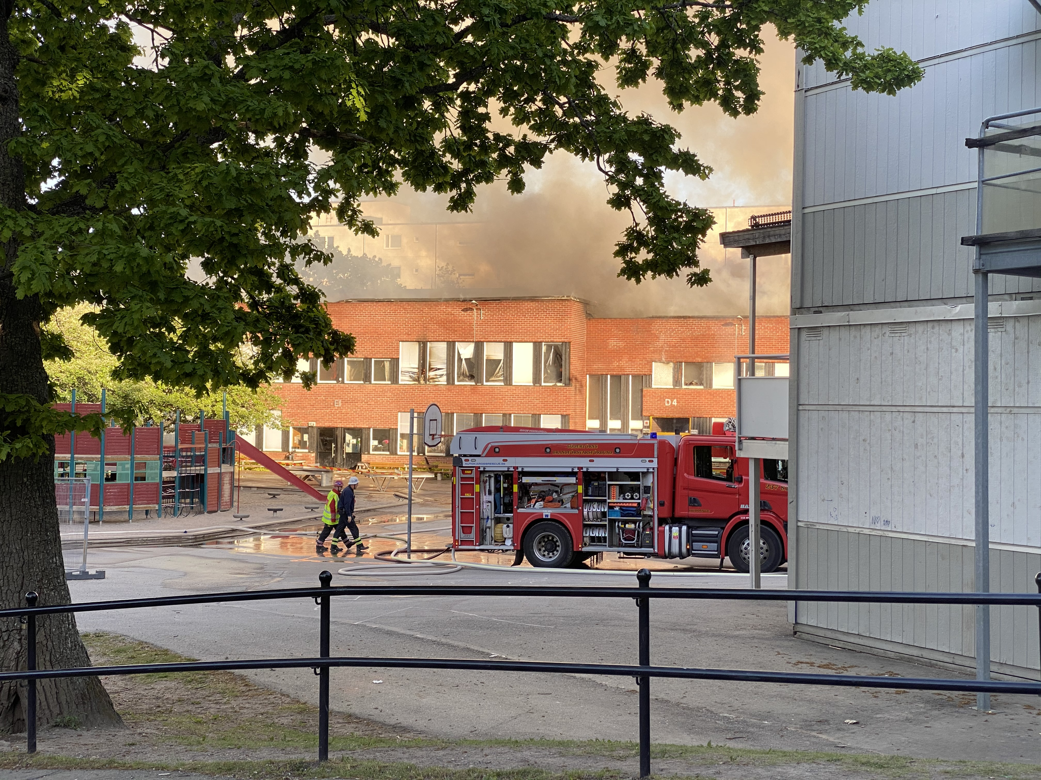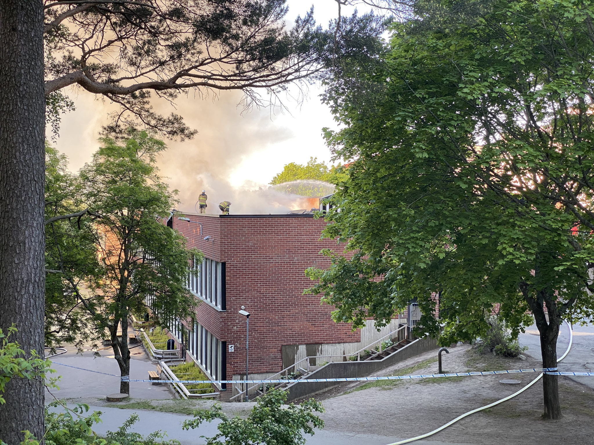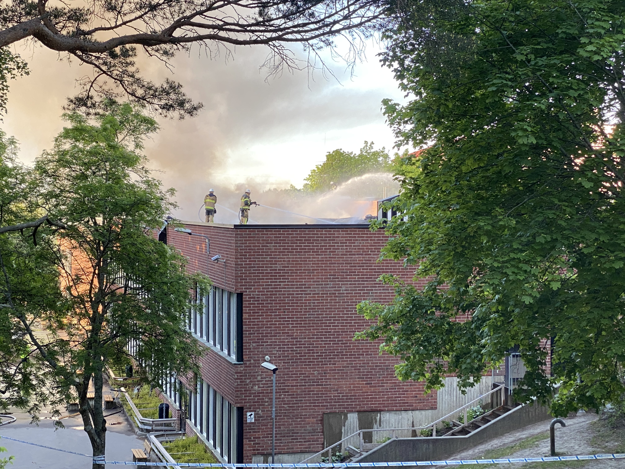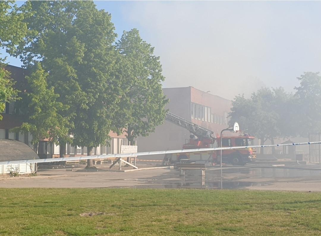 Då ser jag att min vän som jag skulle gå till skolan med lite senare har skrivit. Han bor närmare skolan och i ett högt höghus. Så han kunde se skolan och att den brann.