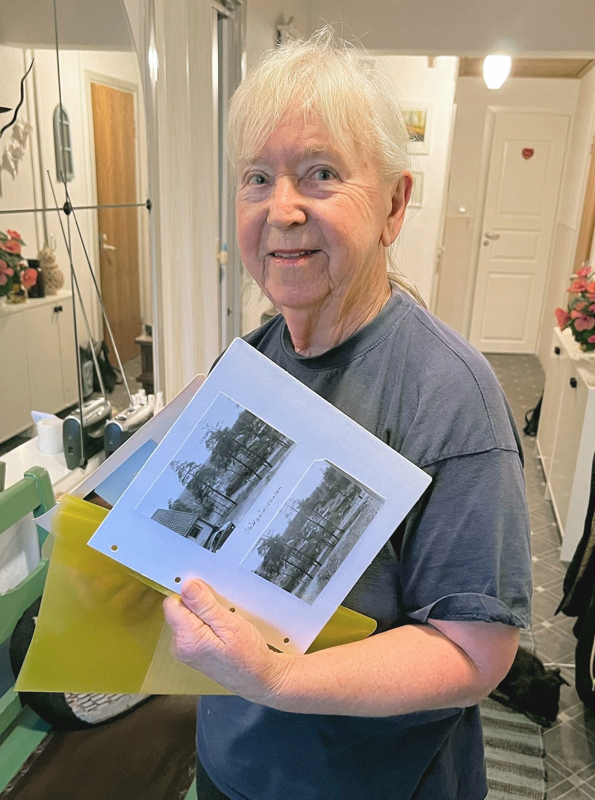 Anette fick höra talas om insamlingen av fotografier av en annan granne med barn på skolan när den brann. De avfotograferade sidorna kommer från Anettes fotoalbum, och i grannskapet där hon bor är hon något av traktens fotoarkivarie.