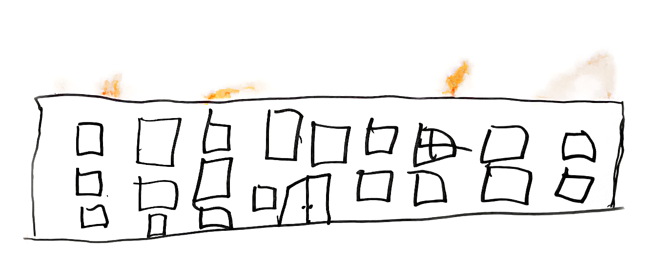Jag går ut på balkongen, och då ser jag röken stiga upp mot himlen. Då förstår jag att det stämde. Förtvivlat så säger jag till alla i familjen.