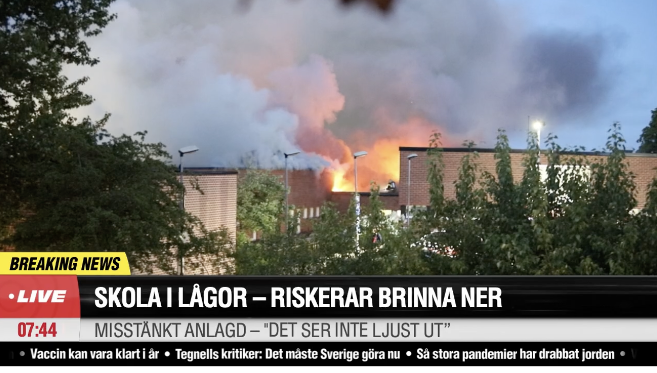 Österman, H. & Toll, M., 2020. Misstänkt mordbrand på skola i södra Stockholm. Aftonbladet, 1 juni. Tillgänglig på: https://www.aftonbladet.se/nyheter/a/g7om8A/misstankt-mordbrand-pa-skola-i-sodra-stockholm [Skärmavbild].