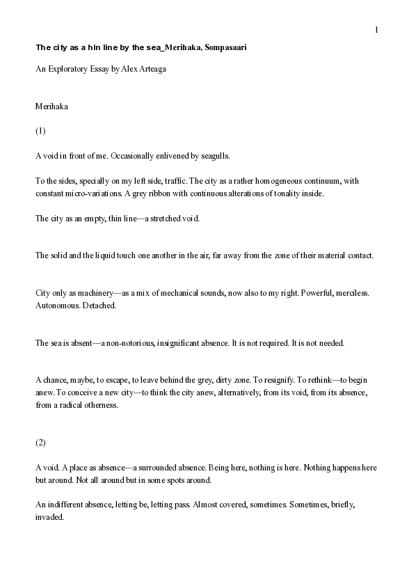 The following excerps of the exploratory essay "City as a Thin Line by the Sea_Meriaka, Sompasaari" were read by Alex Arteaga in the Symposium that was part of the event "City as thin line by the sea [city is no contour]" (Villa Kallwik Vuosaari, Helsinki, May 19 2023):