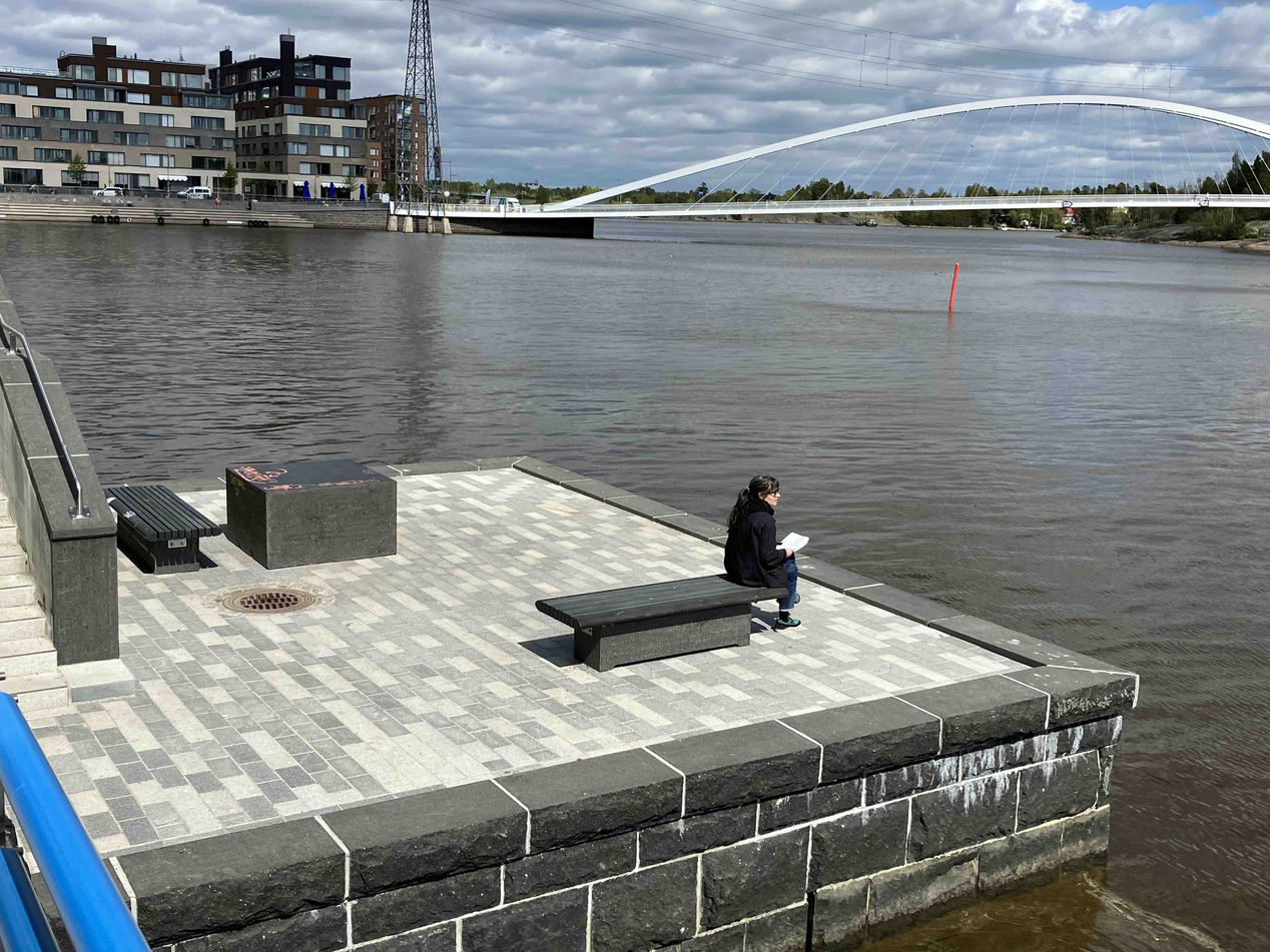 The artifact generated in this iteration consists of an aurally informed exploratory essay in two parts. It aims to describe the city as a thin line by the sea at the shores of Merihaka and Sompasaari. It was written between May 3 and 8 at these two places.