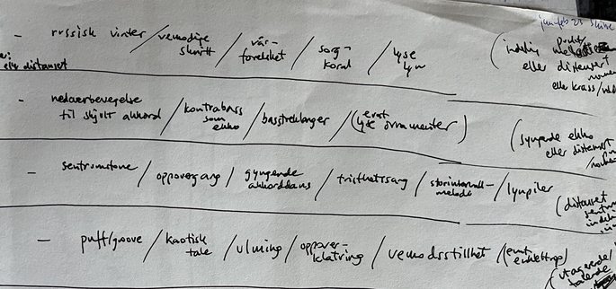 ⁃ Det som en gang var det gamle materialet har inngått i en feedbackloop av skurrete imitasjoner, imitasjoner med innlagte feil. Det er det vi har gjort med Sibelius, og med minner-av-det-vi-har-gjort med Sibelius gjennom flere år.