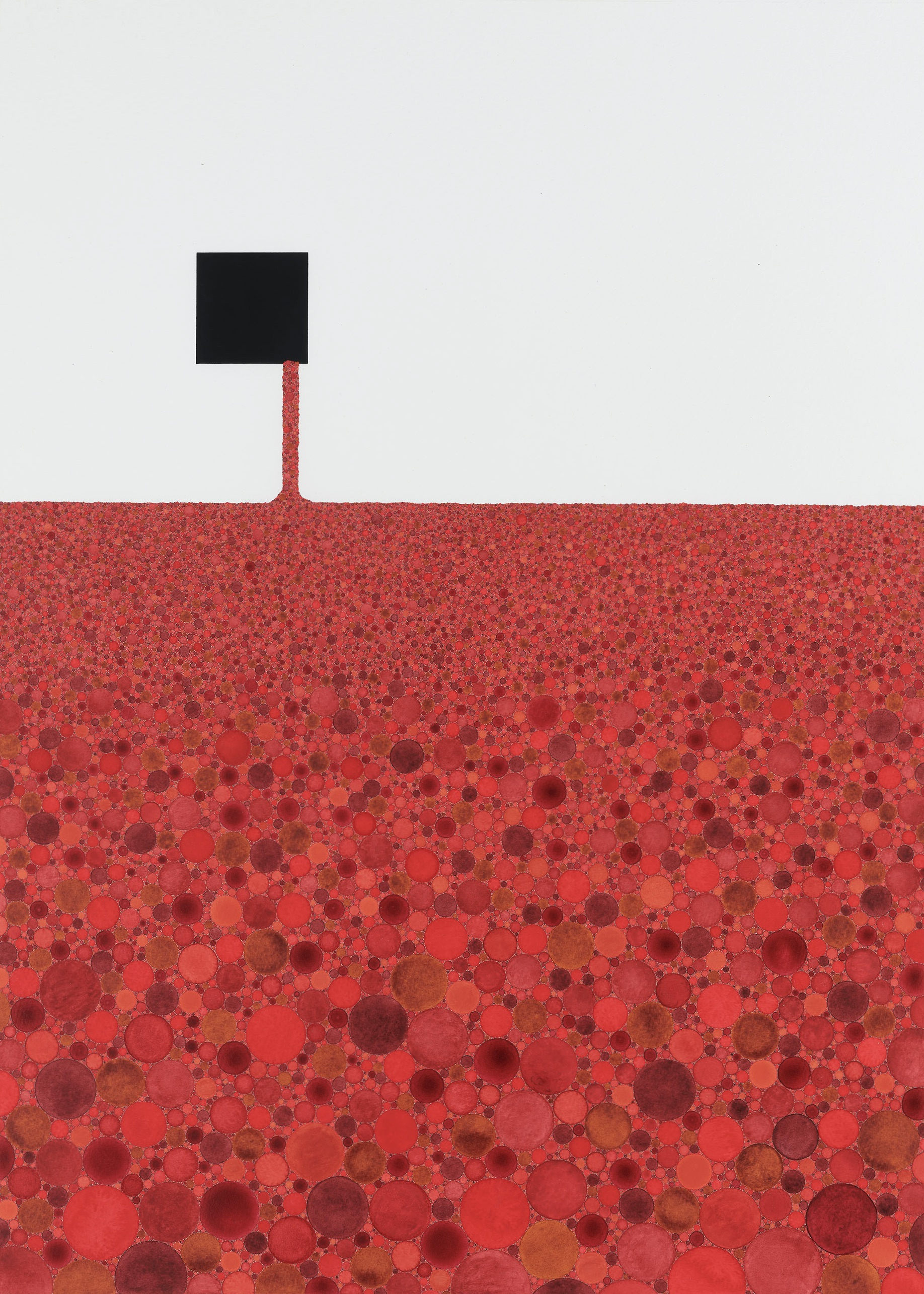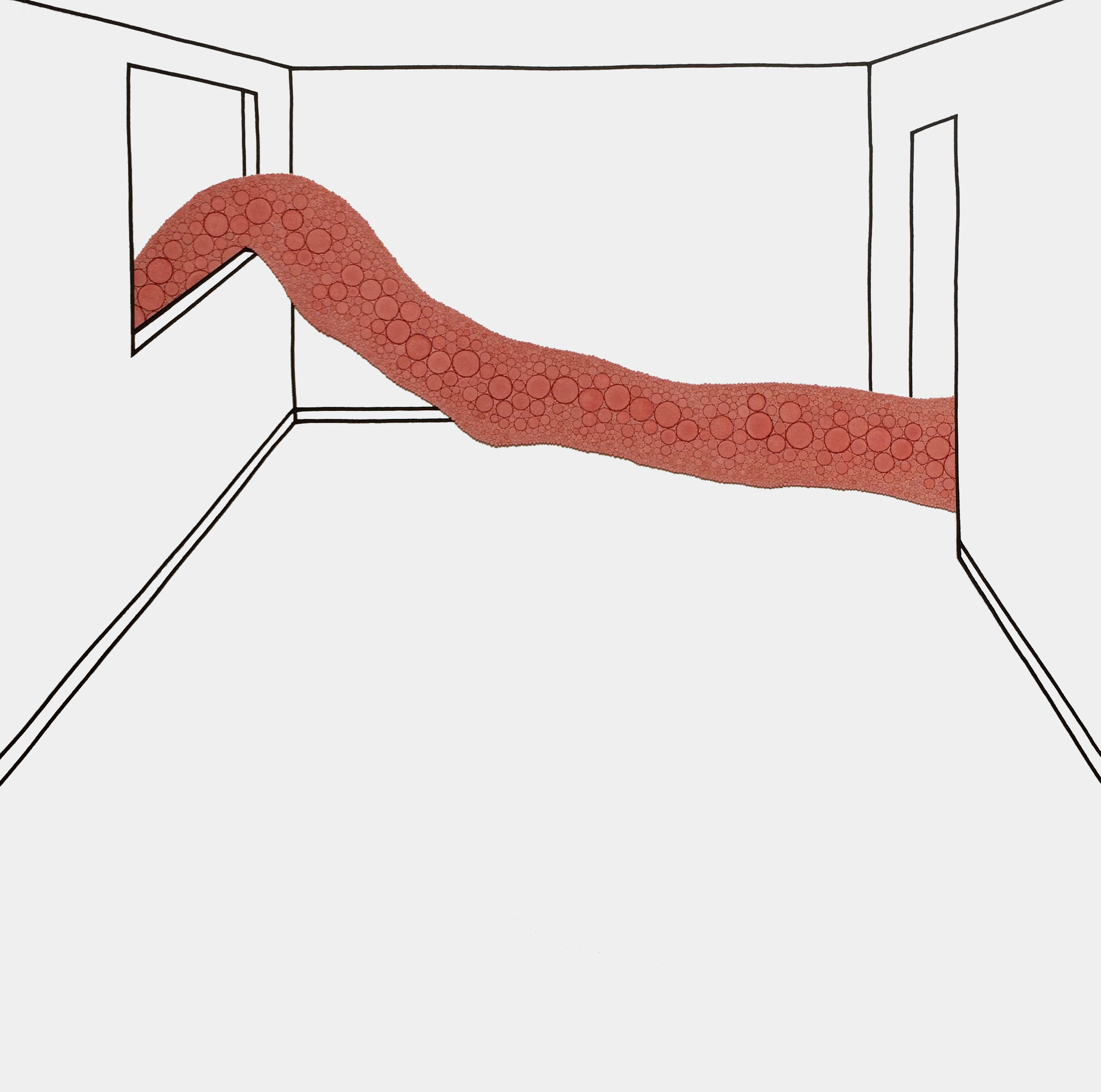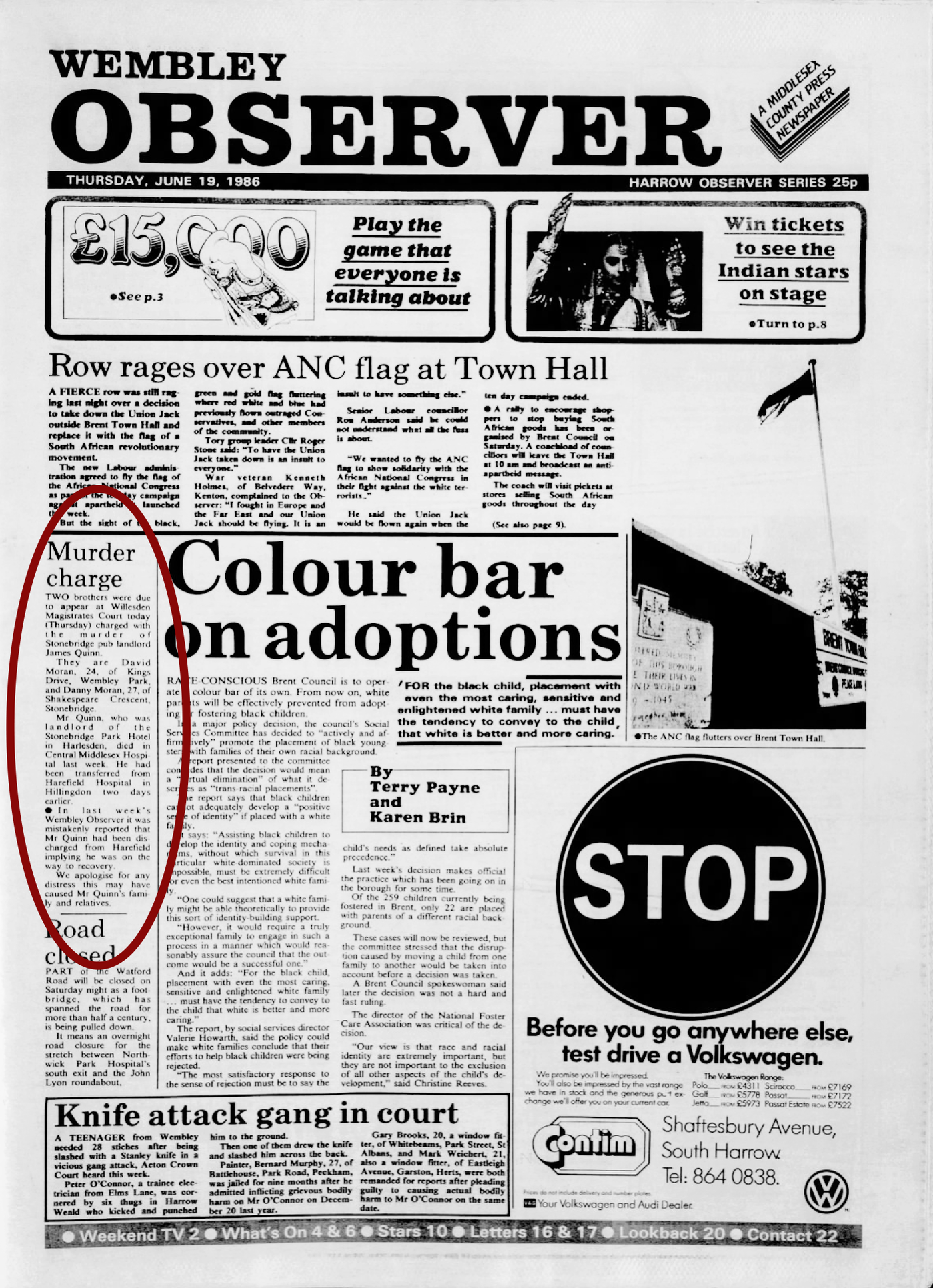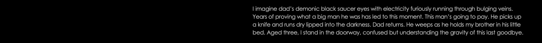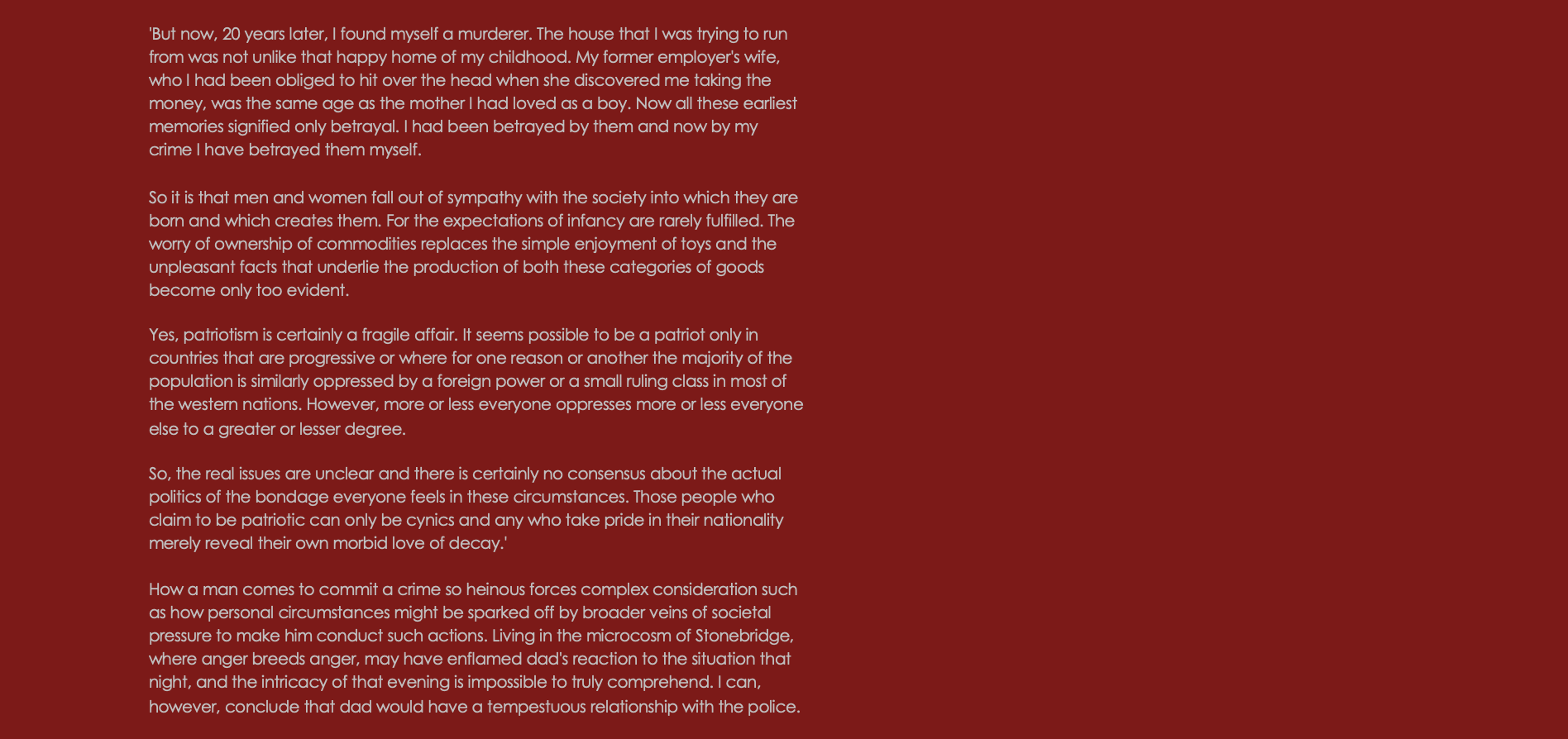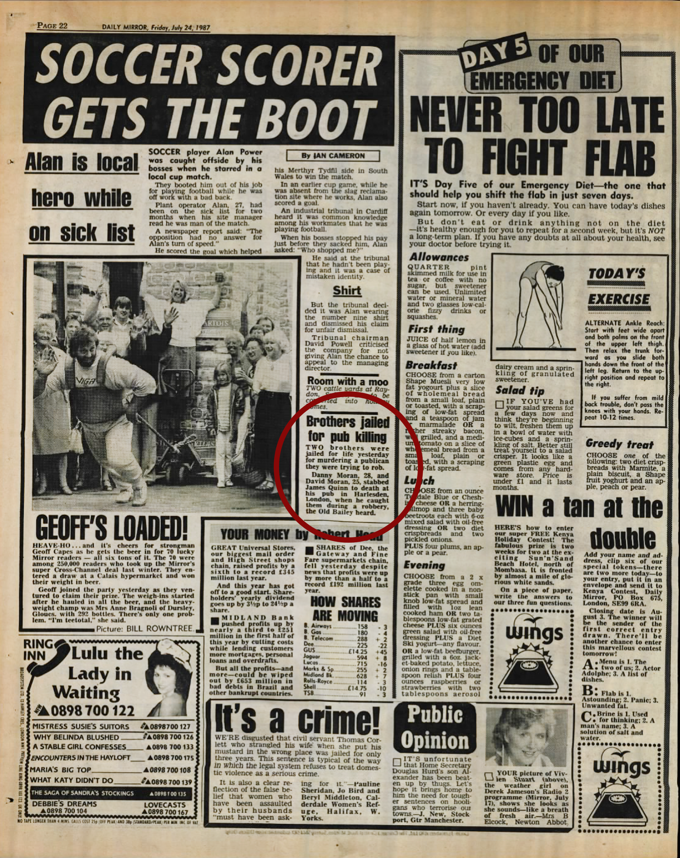 Why I paint Thousands of Circles explores psychological barriers and multilayered themes that stem from a single horrific event that involved Moran’s father and his brother. The artist collates information, photos and constructs an ar(t)chaeological archive where family photos, product imagery, together with newspaper clips to form units of a historical and psychological mind map. The exposition becomes an auto-ethnographical exploration of mid 90's working class North West London. The repetitive painting process, exposed and documented in the exposition, functions as transformative method, where ambiguous feelings of a violent upbringing are directed towards the creation of a visual system with an inherent logic – “creating some kind of beauty out of ugliness.”