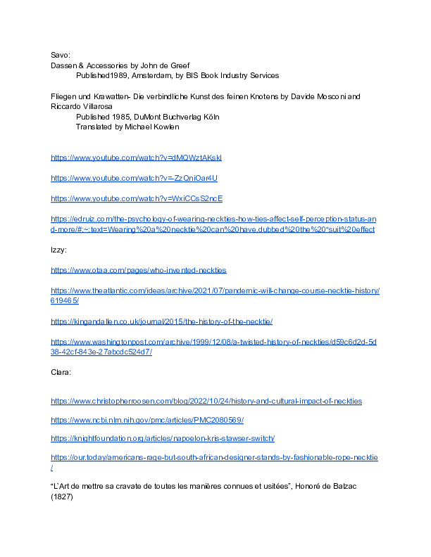 Research for the History of Ties