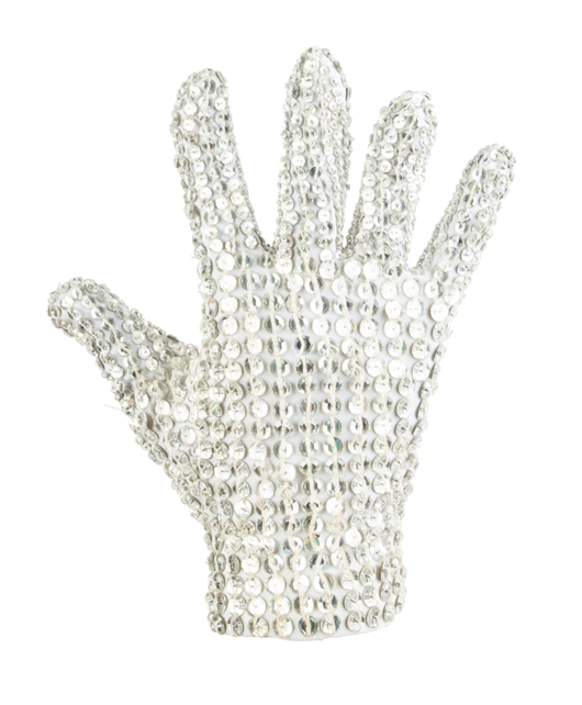 Michael Jackson’s glove from the 1984 Victory Tour. Sequined costume glove worn during performances. Designed by Bill Whitten.
