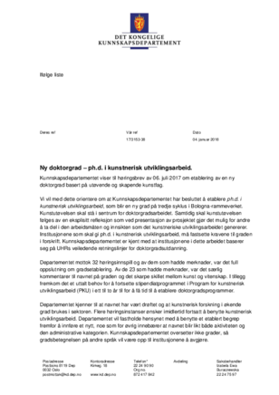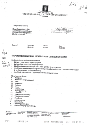 The Norwegian Artistic Research Project Programme is faded out by the Ministry of Education and Research - the resources are distributed directly to the institutions