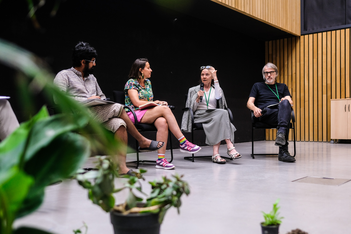 Organising any event during a pandemic is akin to building on unstable ground: one has to tread with due care. And no matter how thoughtful the planning – an unforeseen shift of matter might nix the work, and one will have to start all over from scratch. The concept of the conference thus integrated hybridity from the very beginning, including an online event of a twenty-four- hour long conversation’ which offered a variety of successive presentations accessible from different time zones. However, when the planned date approached in early spring, the number of Covid-19 cases began to rise and quarantine and social isolation measures were again put in place. As a result, the conference was postponed to the summer, leading to no small amount of additional coordination work, and demanding a high degree of flexibility from all participants, contributors and team. In consideration of the outgoing attractors, the shift in formats was necessary to lower the health risks for everyone involved. Even at the very last minute, staff, speakers and moderators fell ill and were unable to travel. In order to mitigate this level of uncertainty, the conference was designed to be decentralised and partly online.