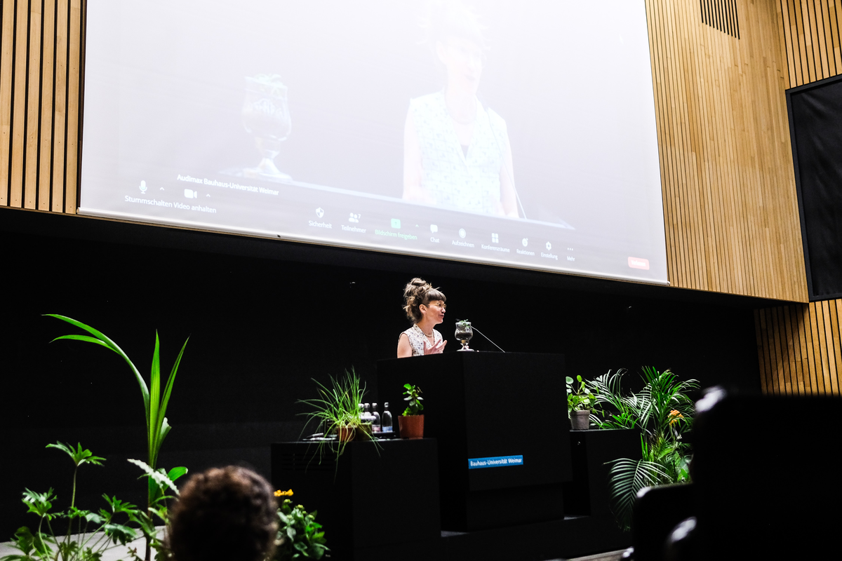 Initiated and co-organised by the Society for Artistic Research, the 13th International Conference on Artistic Research was a networking event within the international field of artistic research. Taking place from 30 June through to 3 July 2022, for the first time in Germany at the Bauhaus-Universität Weimar, the conference consisted of a twenty-four-hour online event and three days of live, on-site events, which attracted more than two hundred international researchers and seventy contributions, including workshops, online talks, research presentations and keynote lectures. The conference was structured around three main thematic clusters that brought together the state-of-the-art in artistic research to creatively respond to current global crises: Mend, Blend, and Attend. The conference was accompanied by the artistic program, ‘Spooky Actions at a Distance’, consisting of four group shows and five performances and interventions. This series of events was the first comprehensive public presentation of practice-based research in art and design in Weimar, and a milestone for the Bauhaus-Universität Weimar.