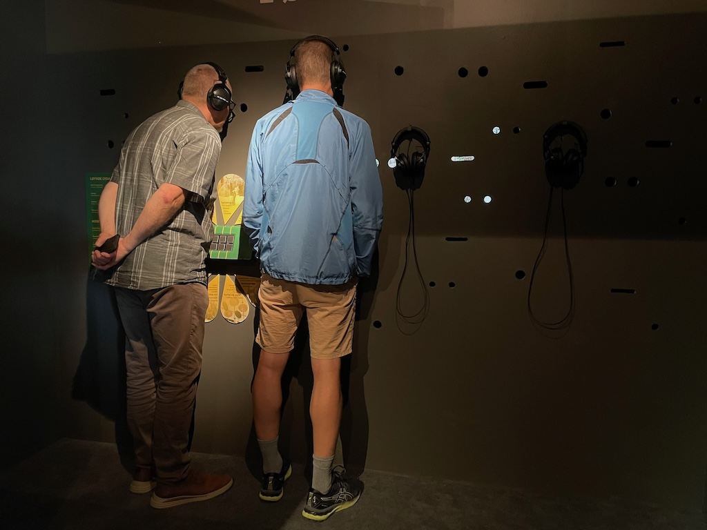 At first glance, the work appears simple, yet it gradually engages the visitor in a listening experience that might have initially seemed more challenging to them: the entrance and the a wall of peepholes and headphones piques curiosity. Once the headphones are worn, it becomes immediately apparent that the soundtrack differs from what one typically encounters in other museum exhibitions—those dominated by narrative texts and clear sound effects. While some visitors may initially perceive the sound as unusual, the visual clarity of the images sustains their interest until they acclimate to the unconventional auditory experience. The installation appealed to all ages.